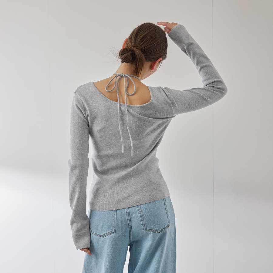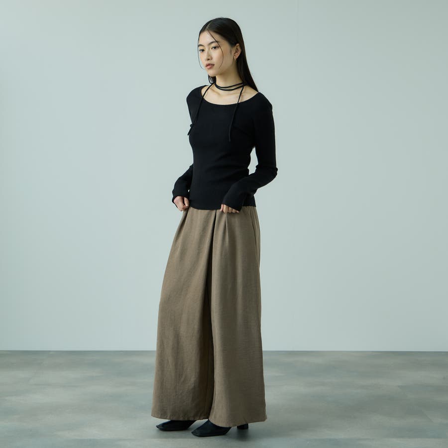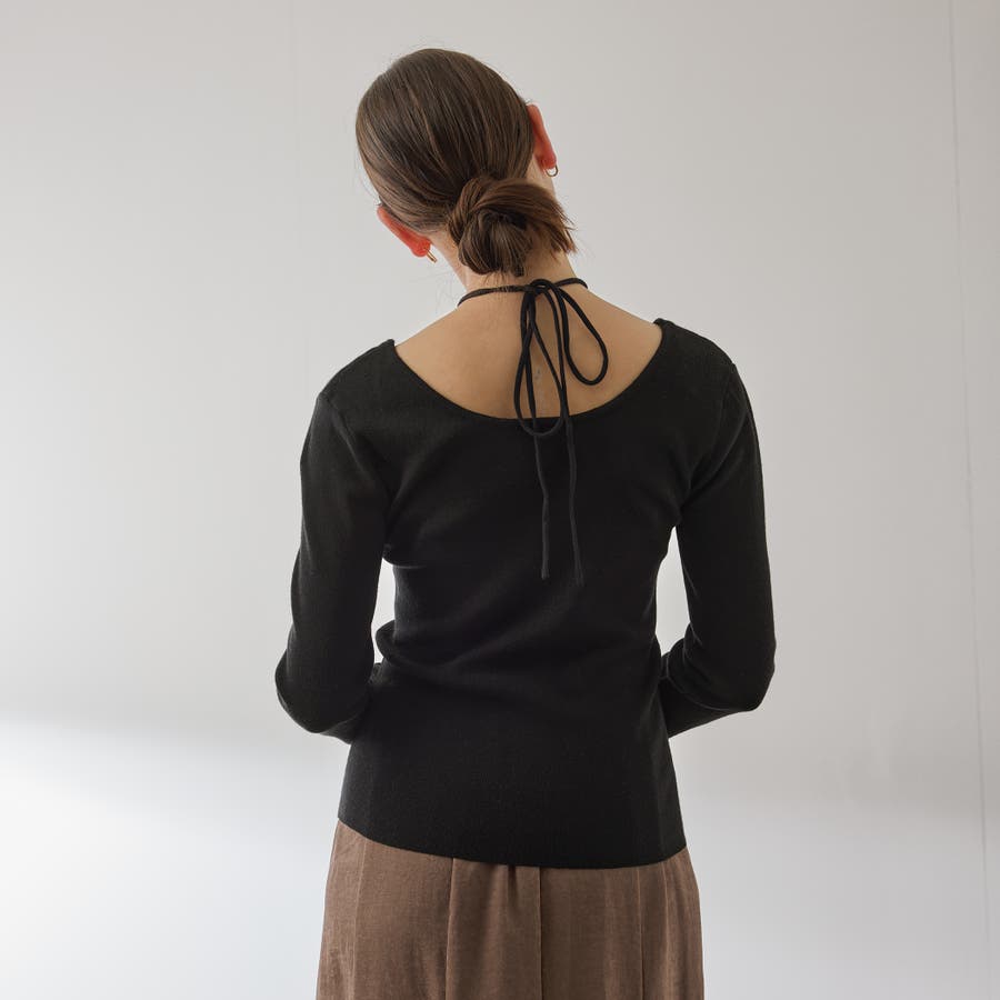 ストリング付バレエネックリブニット≪手洗い可能≫