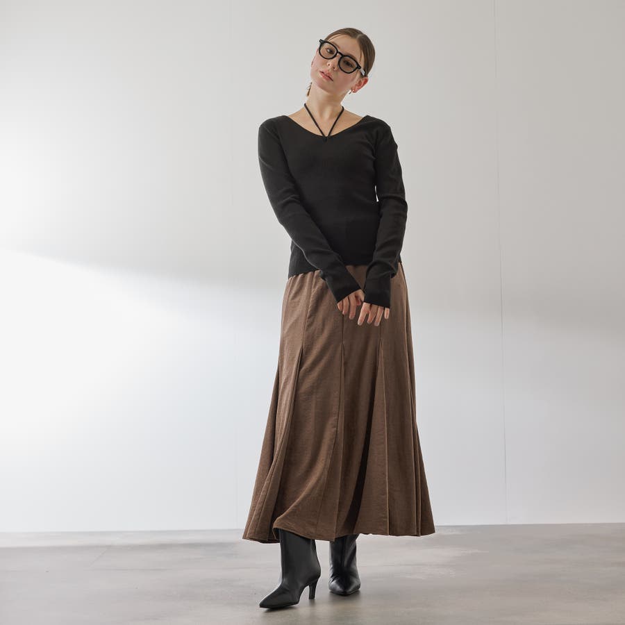 ボディに寄り添うコンパクトなシルエットなので、サーキュラースカートにあわせてバレリーナを想わせるルックに、ナローシルエットのボトムをあわせてエレガンス感のあるルックにと着合わせるアイテムで大きく印象変化が楽しめる一枚です。