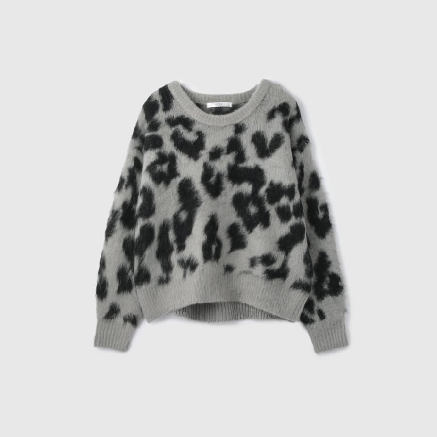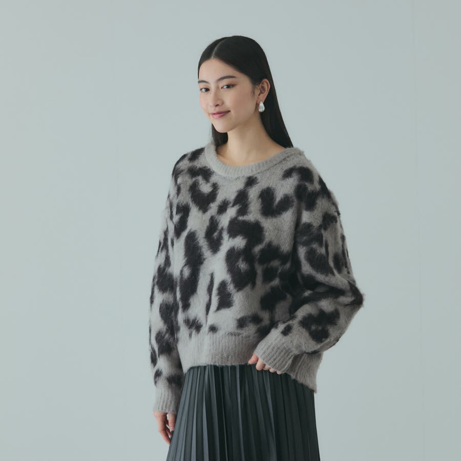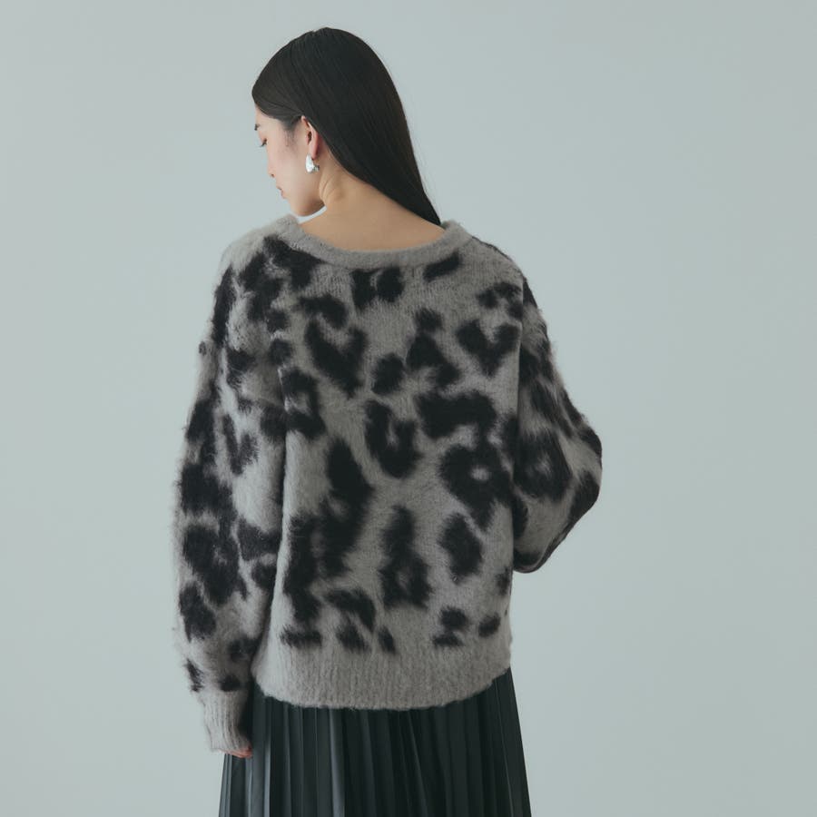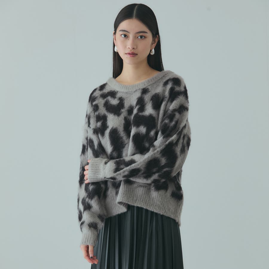 大きめのレオパード柄が目を引くジャカードシャギーニットプルオーバーです。