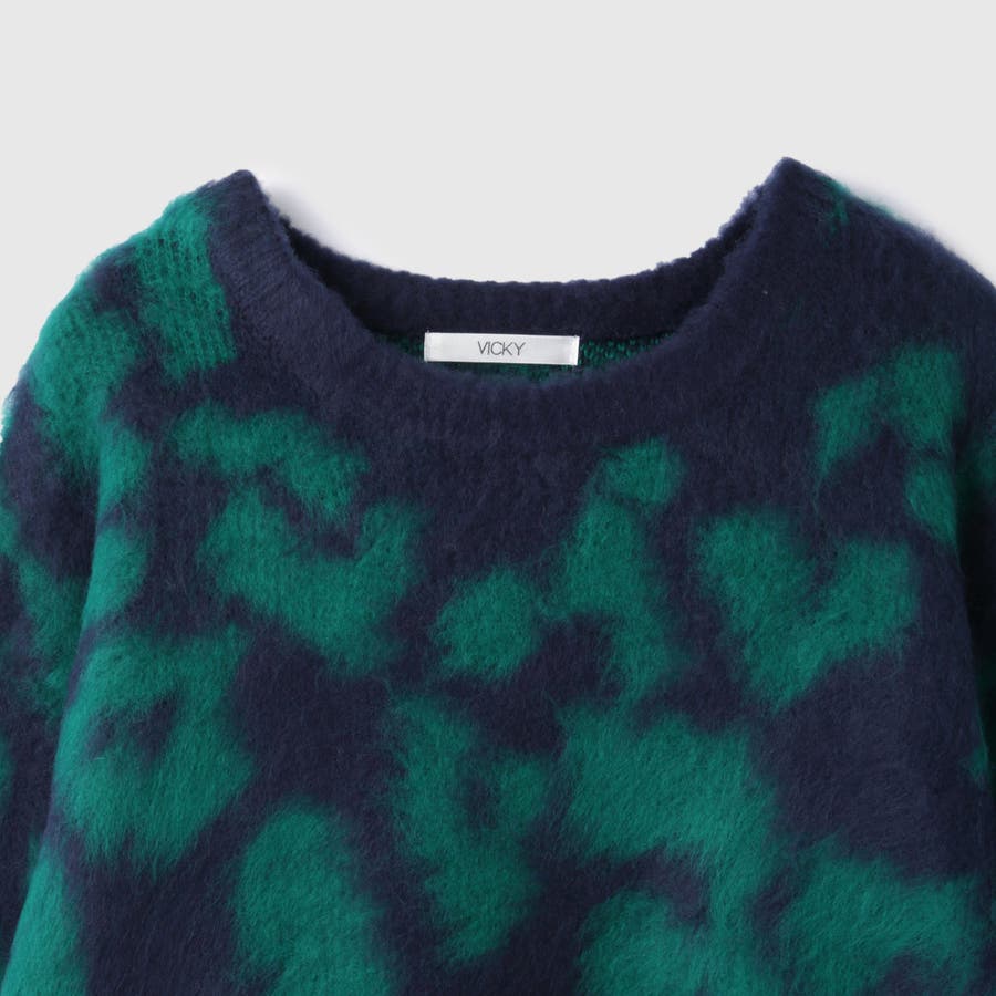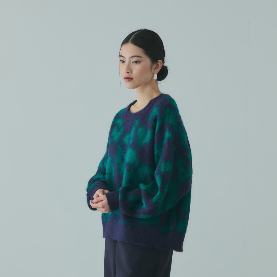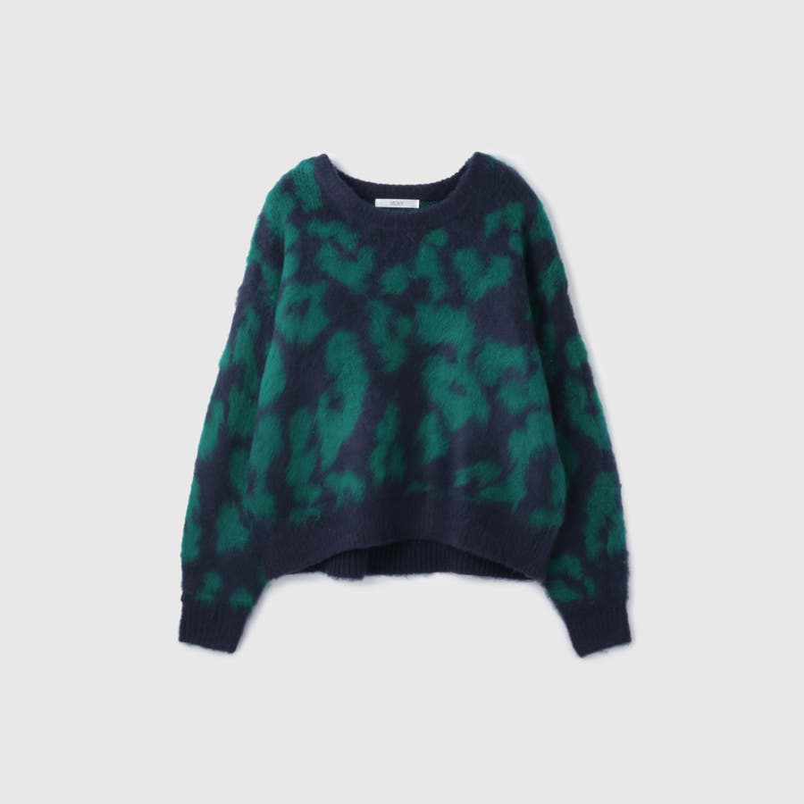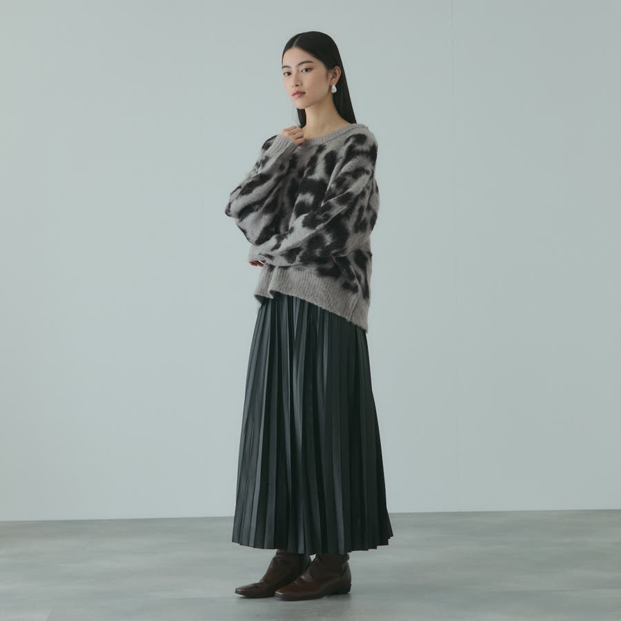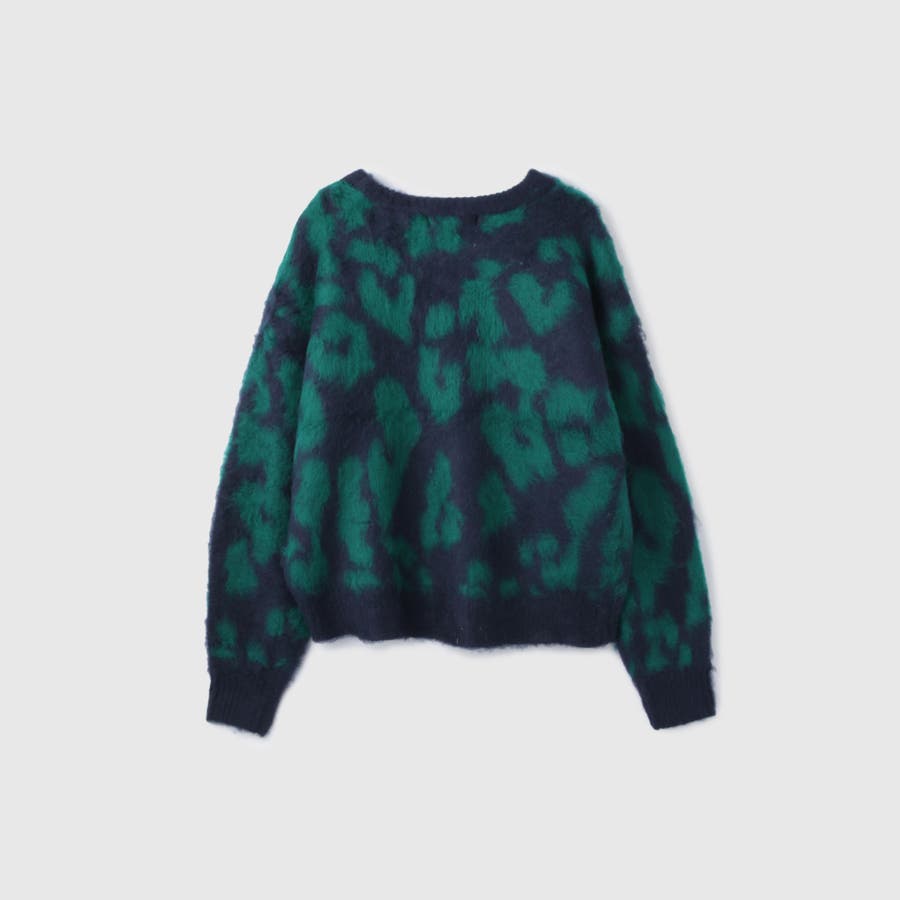 大きめのレオパード柄が目を引くジャカードシャギーニットプルオーバーです。
