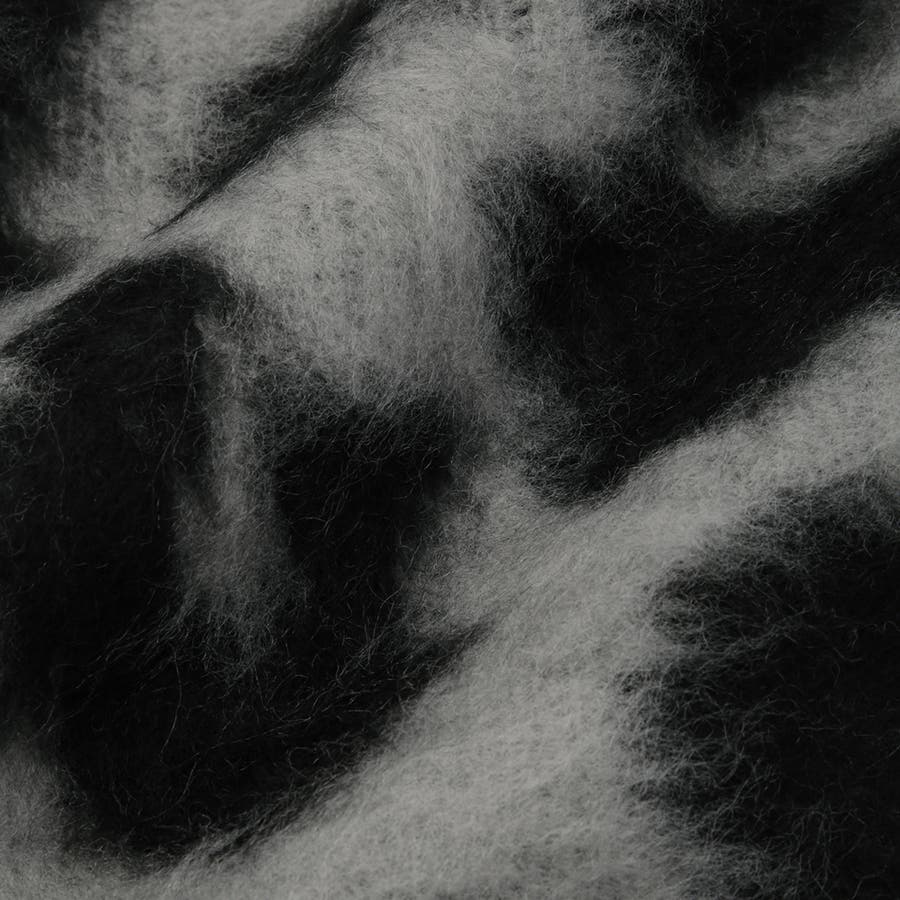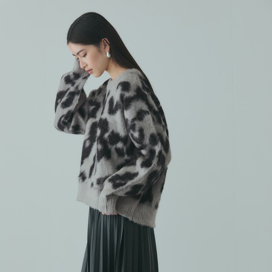 インパクトの出やすい大柄は、毛足感のある素材を使用することでラインが曖昧になり、優し気な空気を纏います。