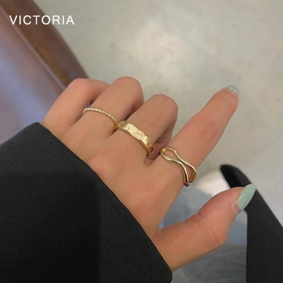 指先に洗練されたモード感を演出する3点セットリングが登場!異なるデザインのリングが3点揃ったこのセットは、単独でシンプルに着用するのはもちろん、複数の指に分けてつけたり、すべて重ね付けしたりと、気分やスタイルに合わせて様々なアレンジが楽しめます。どのリングも個性的でありながら、全体として統一感があり、指元を華やかに彩ります。カジュアルな日常使いから、オフィススタイル、ちょっとしたお出かけまで、幅広いシーンで活躍します。