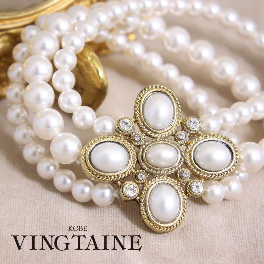アンティーク調3連パールブレスレットB14 13[アクセサリー ドレス