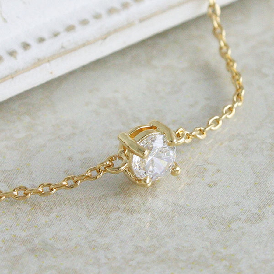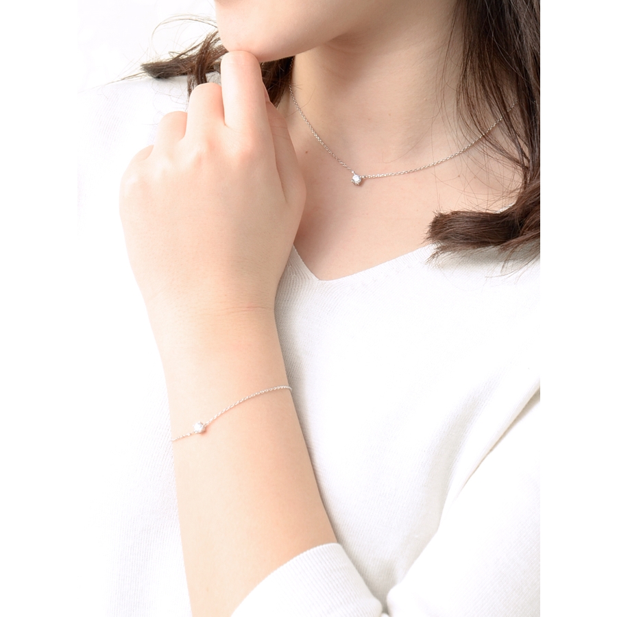 上品なリッチ感を演出してくれる一粒キュービックジルコニアのブレスレット。4本爪でセッティングされたキュービックジルコニアは一粒でも十分に輝いてその存在感を放っています。シーンやお洋服を選ばないシンプルなデザインだからデイリー使いに重宝しそう。気取らずデイリーのスタイルに取り入れて女らしい華やかさを加算したい。