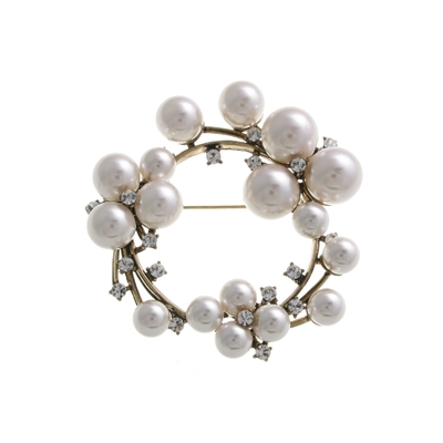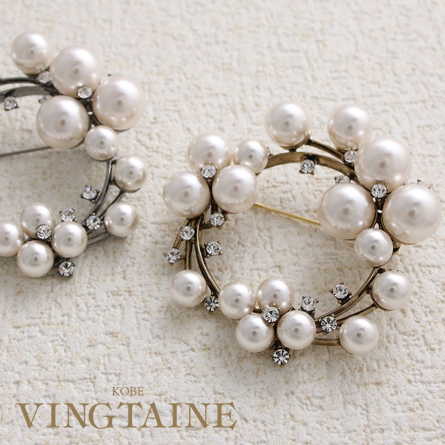 アンティーク調パール×ストーンサークル型ブローチ ラウンド型 卒業式