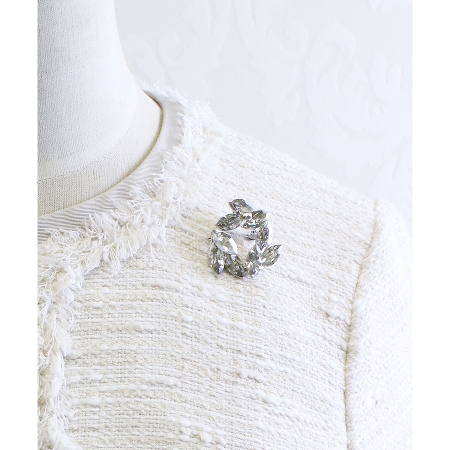 上質なストーンを贅沢に使用した、ボリュームのあるブローチ。ストールを巻いた首もとや、カーディガンの襟元一つににつけただけでも、お洋服に立体感が生まれて、華やかさが格段にアップ。結婚式などの華やかな場での装いにはもちろん、いつものワードローブに1点投入するだけで、ぐんと新鮮に!ペンダントトップとしても使えるのでお洒落の幅も広がります。