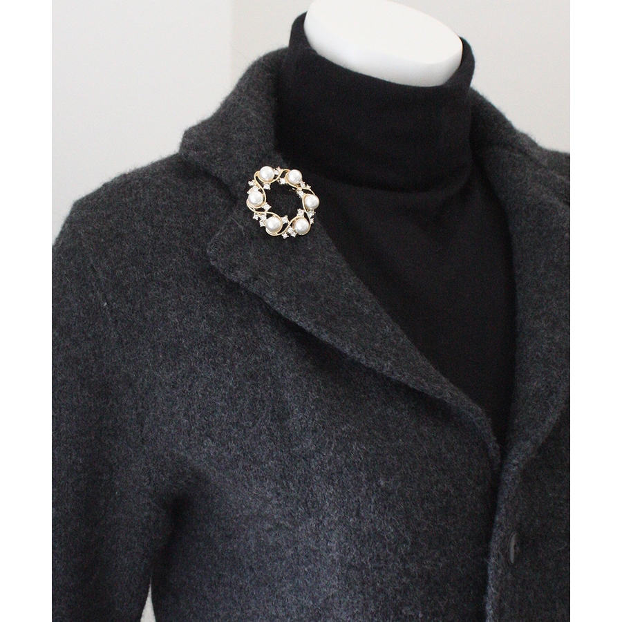 コーディネートにノーブルな印象をプラスしてくれるパールブローチ。ストーンを散りばめて華やかさも抜群。マンネリになりがちな冬のコートも、ブローチを一点投入するだけでぐっとクラシカルな印象が高まります。