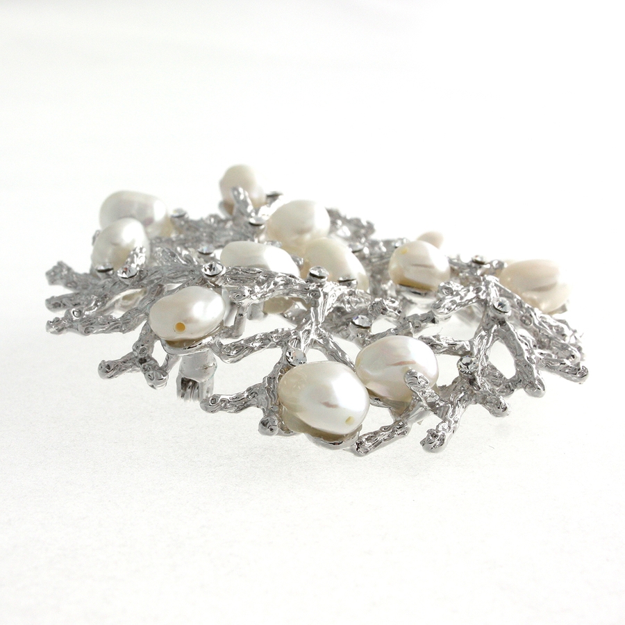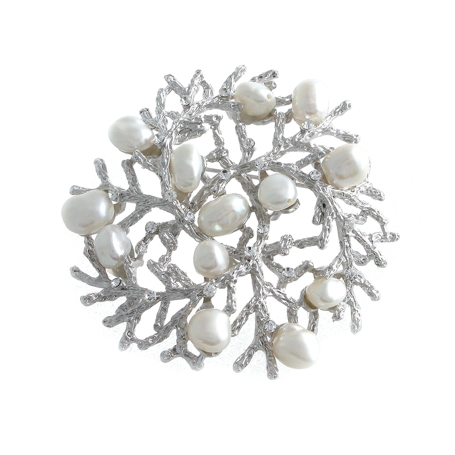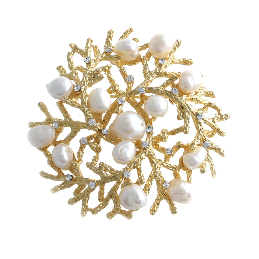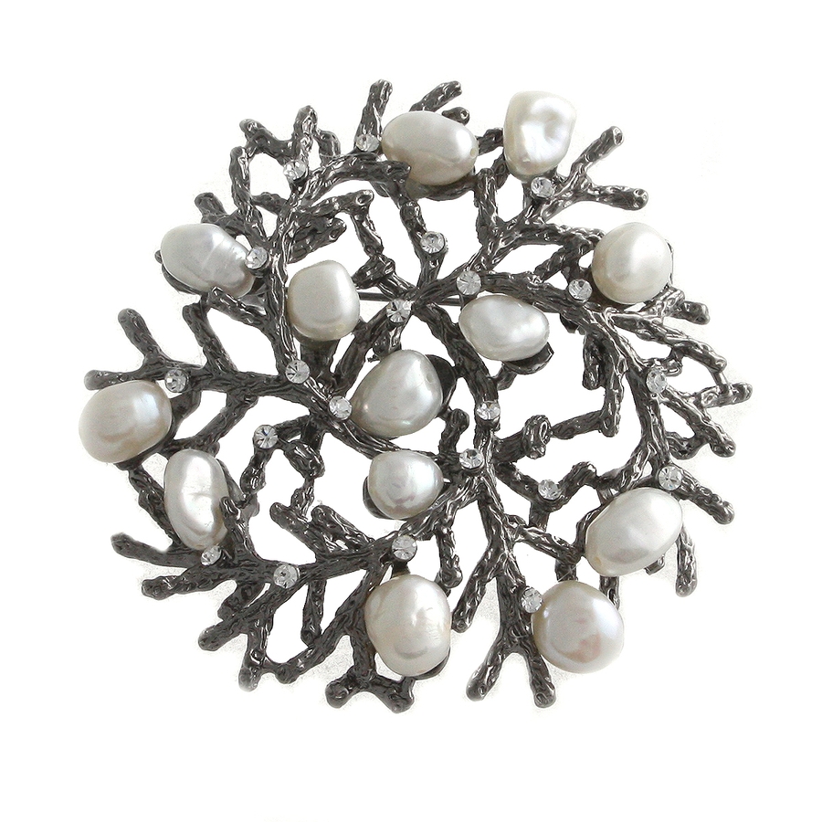 淡水パールラウンドブローチ ブランチ風 枝BR