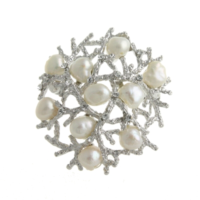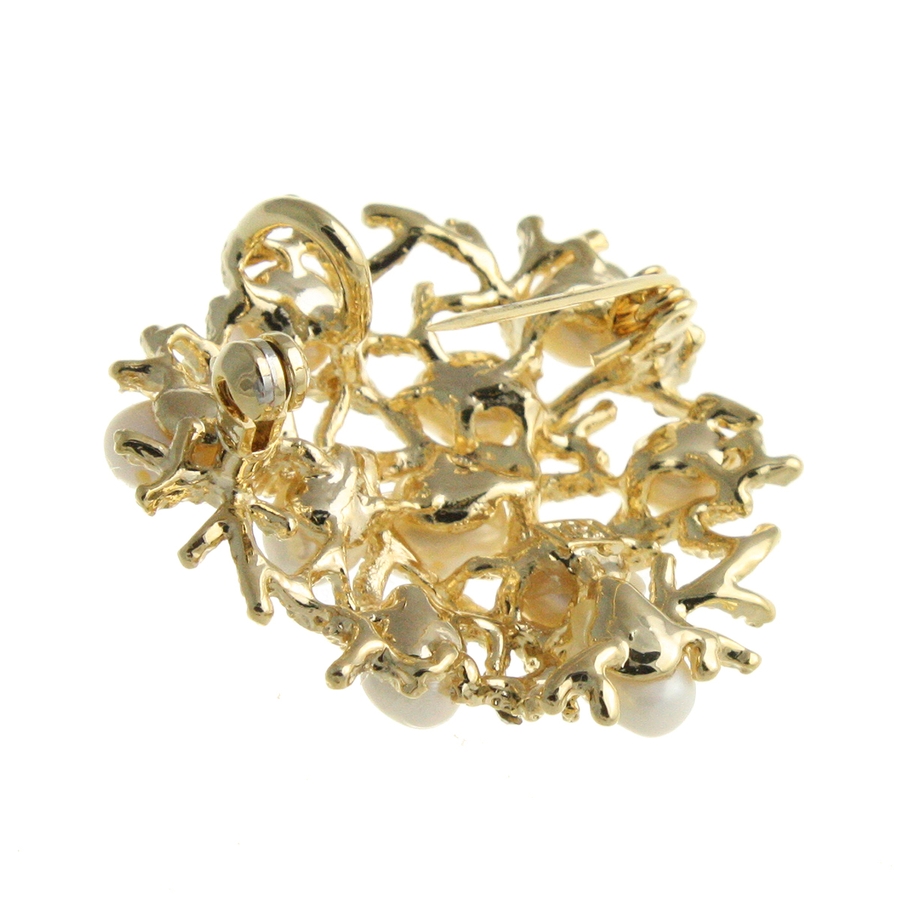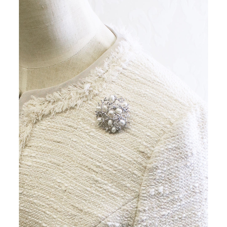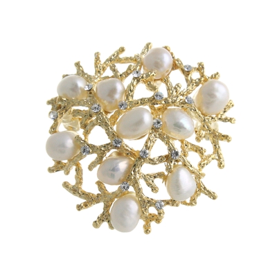 淡水パールラウンドブローチ ミディアム ブランチ風