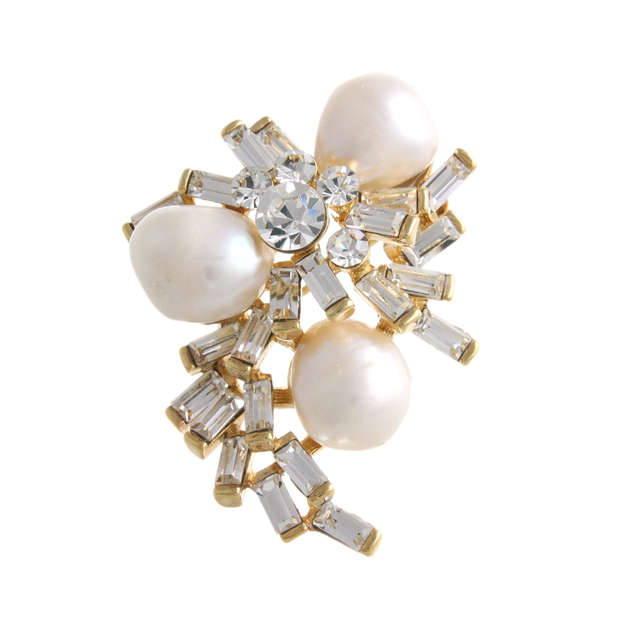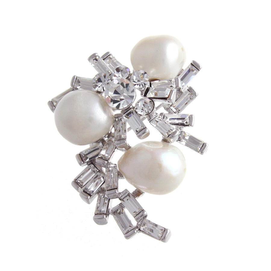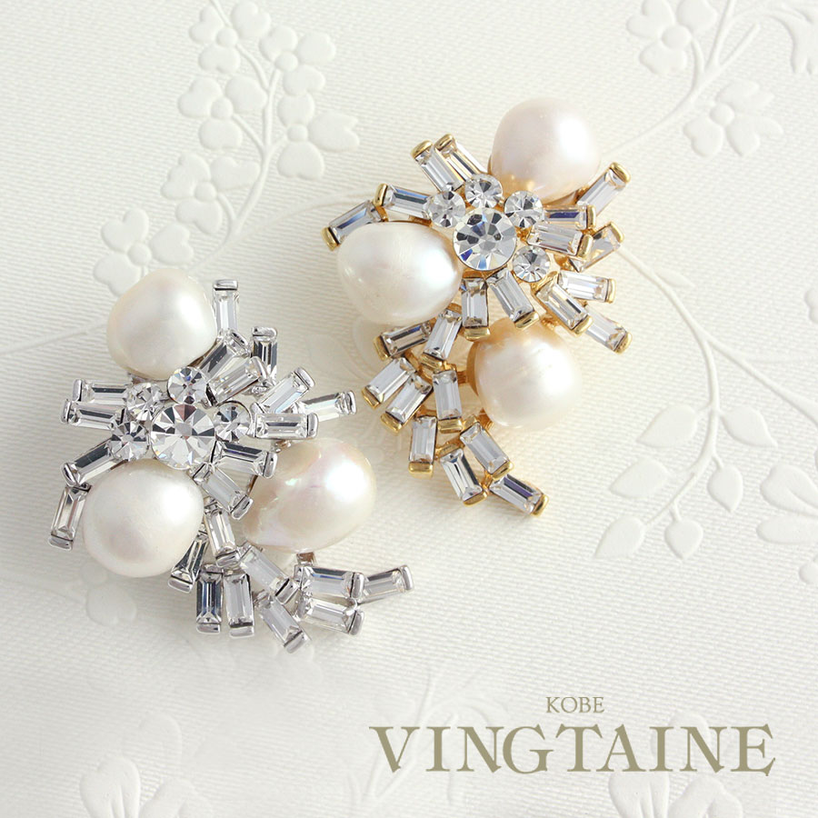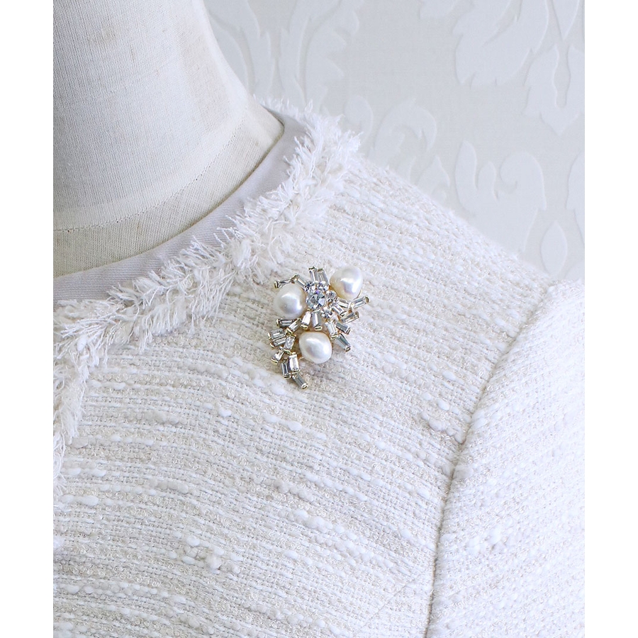 淡水パール×ストーンブローチ/ラインストーン 母の日 ギフト BR-59