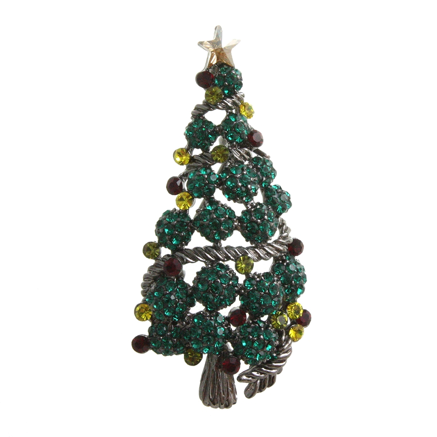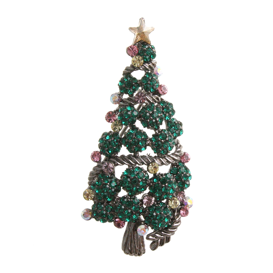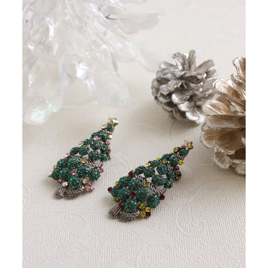 クリスマスツリーミニブローチ 細デザイン カラフル