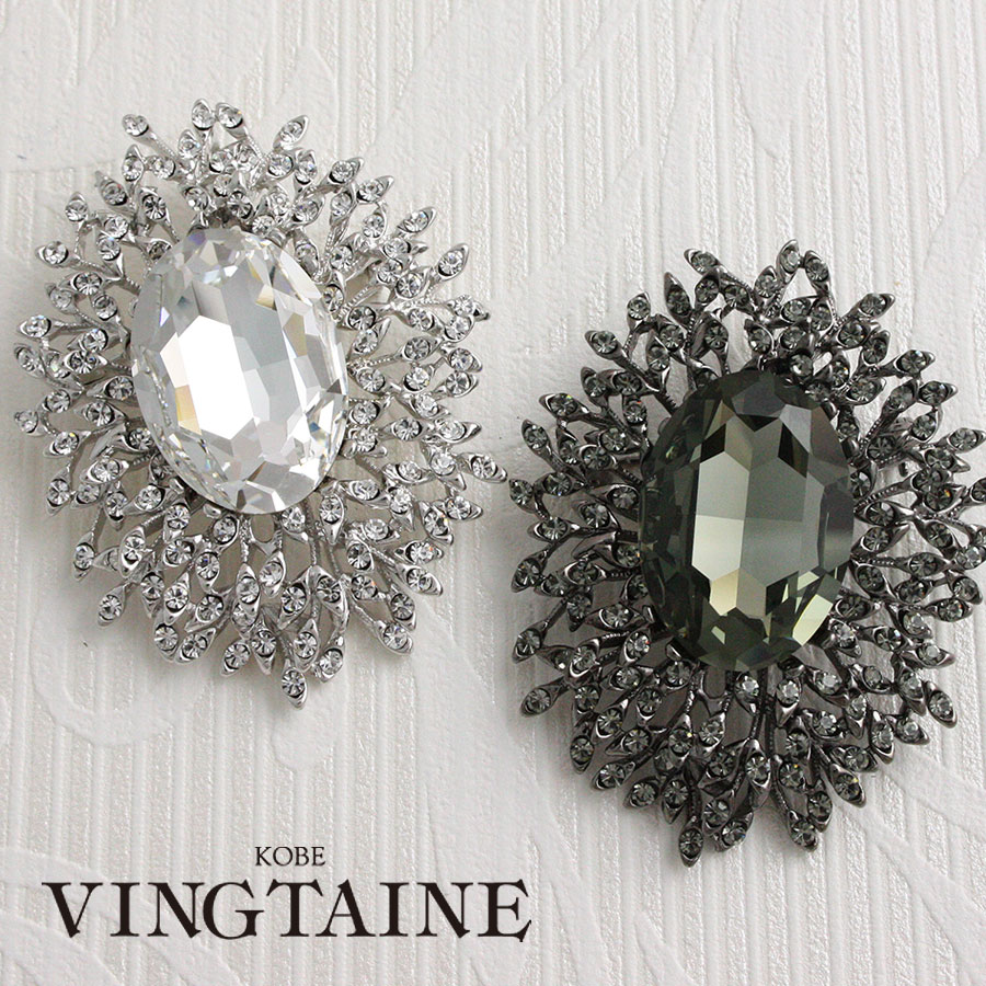 ブローチ オーバル クリスタル