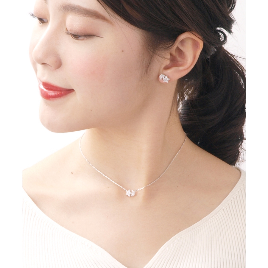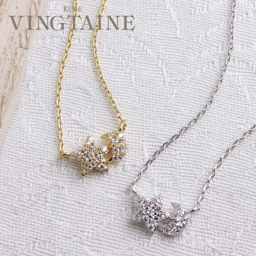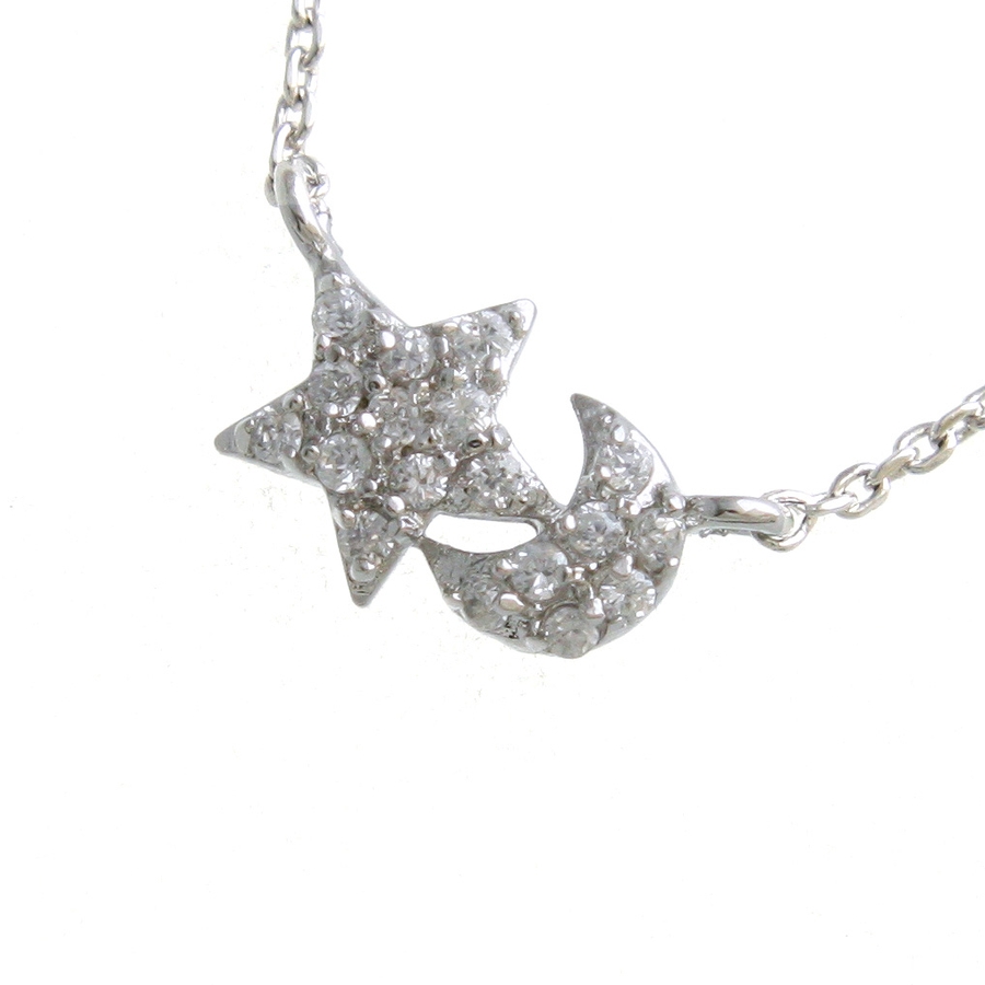 キュービックジルコニアムーン&スターネックレス 月 星