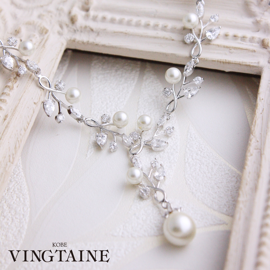 パール×リーフモチーフチョーカー ネックレス 結婚式