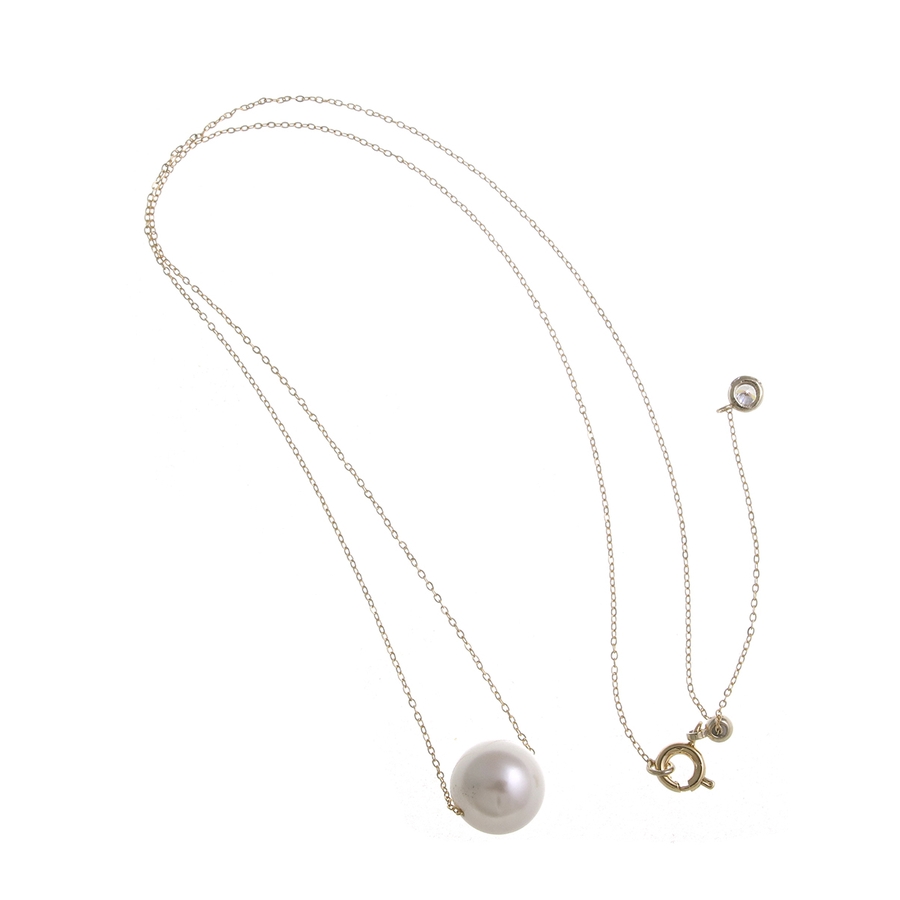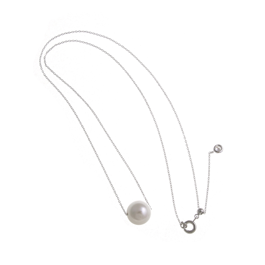 クリスタルパール一粒ネックレス スライド式アジャスター スライダーチェーン