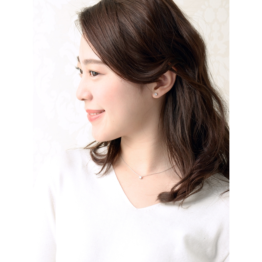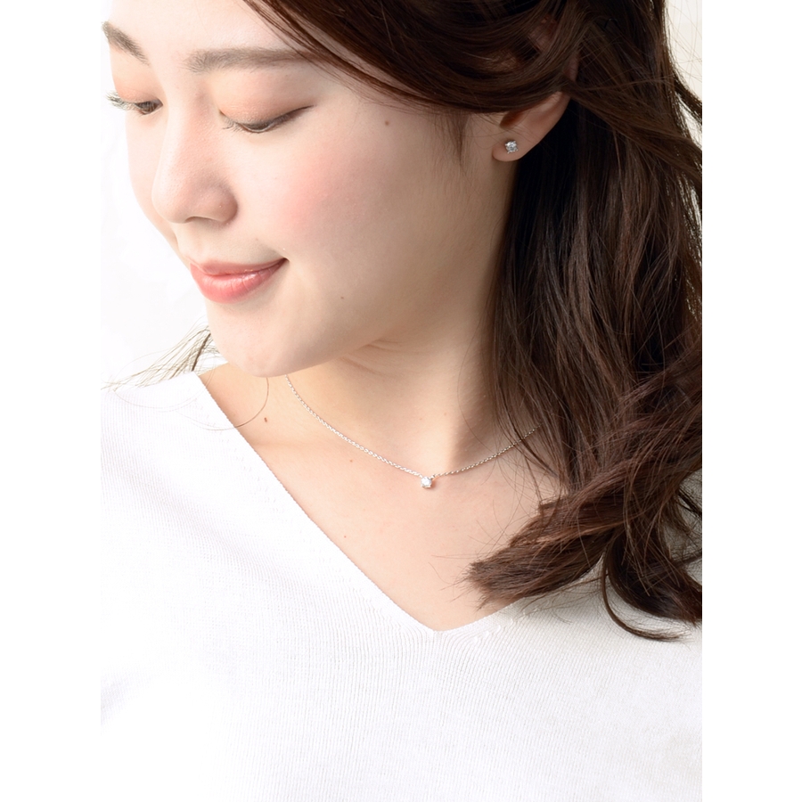 一粒ストーンネックレス キュービックジルコニア 真鍮