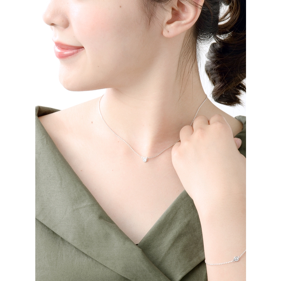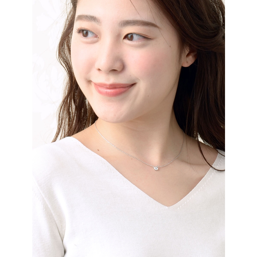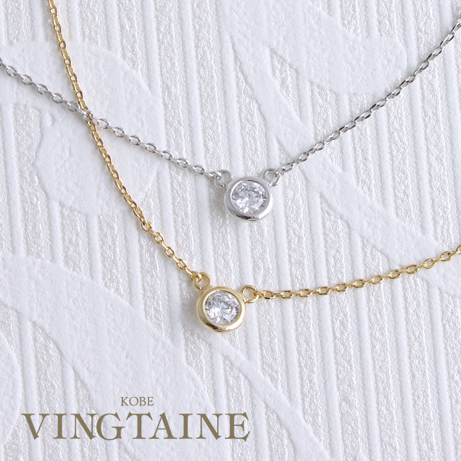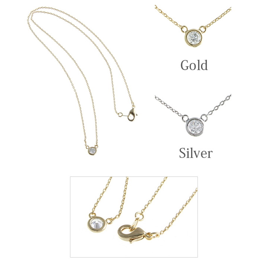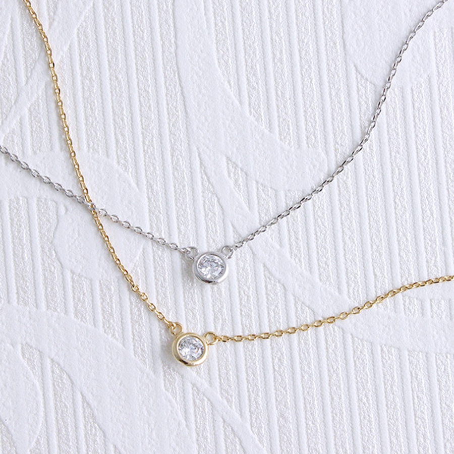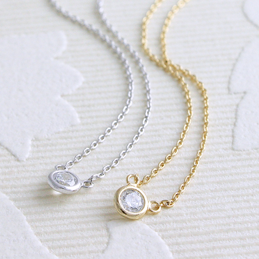 一粒キュービックジルコニアラウンドネックレス/CZ/シンプル/華奢 C3188