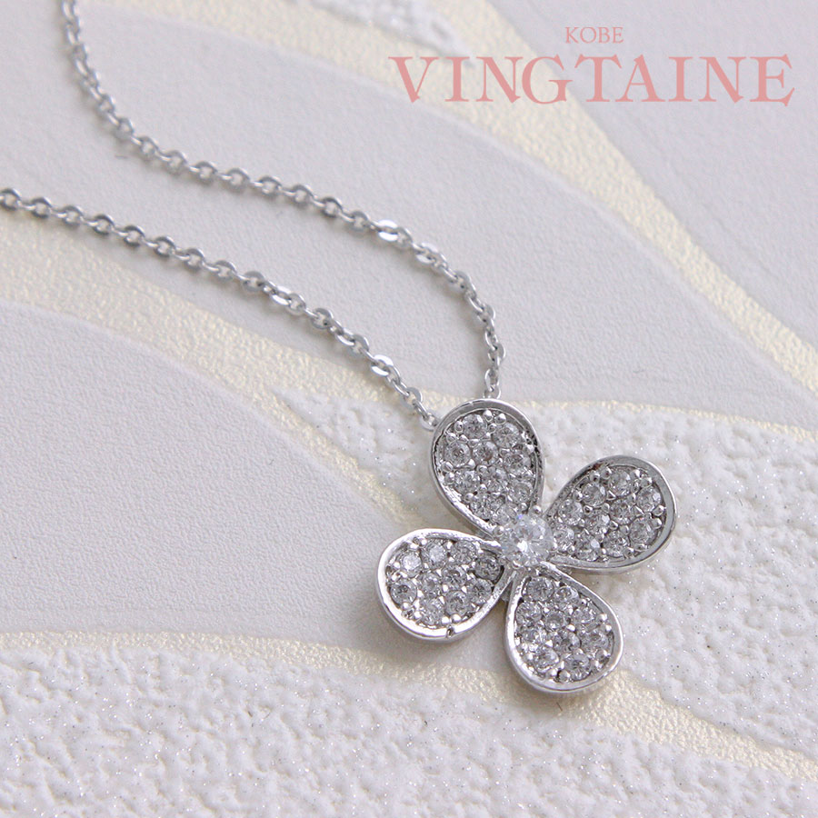 パヴェフラワーネックレス 花 キュービックジルコニア
