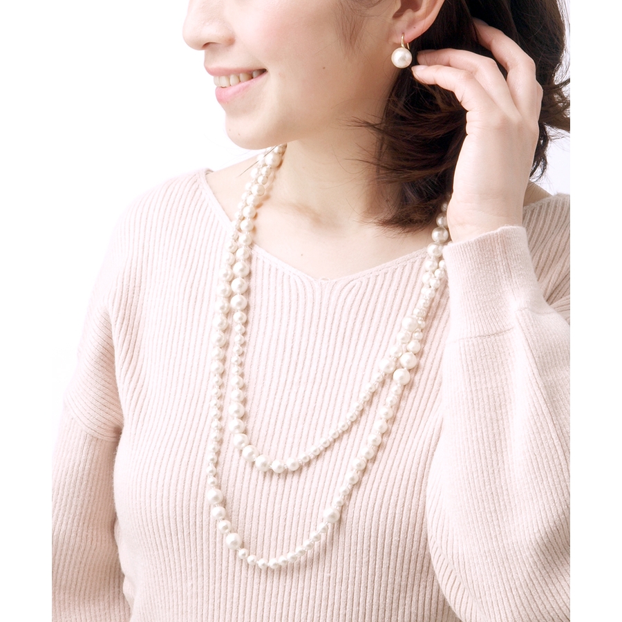 ランダムコットンパールロングネックレス シンプル アレンジ自在