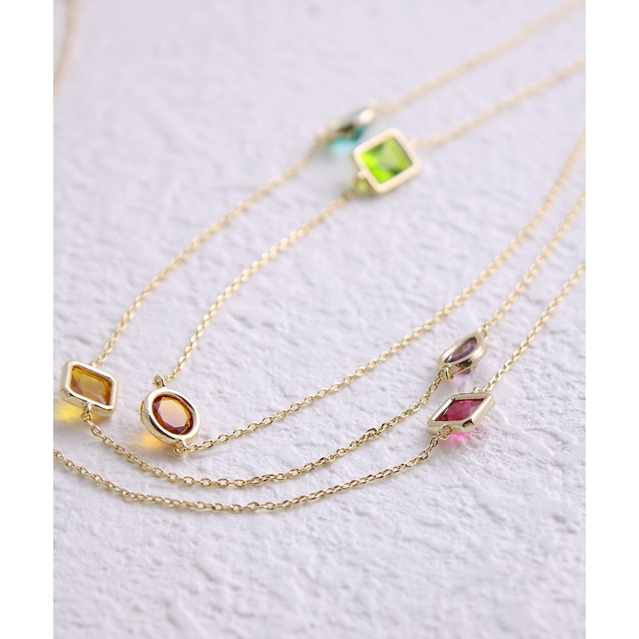 ジュエルなミックスカラーストーンロングネックレス チェーンネックレス ゴールド