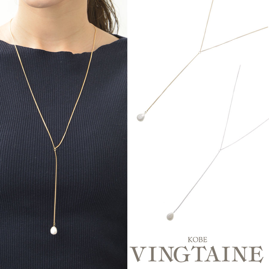 淡水パール&Y字チェーンネックレス ラリアット バロックパール