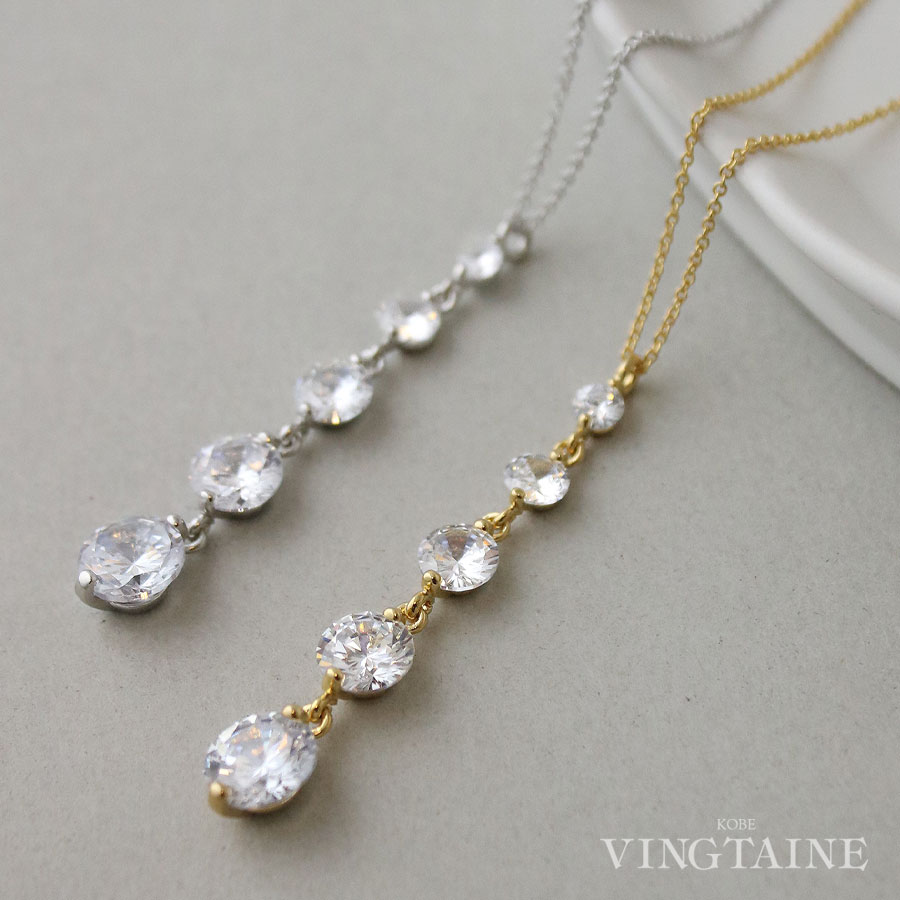 ネックレス 5粒 キュービックジルコニア