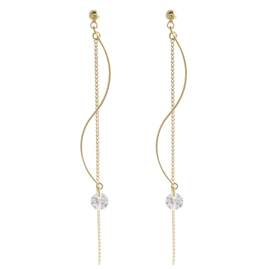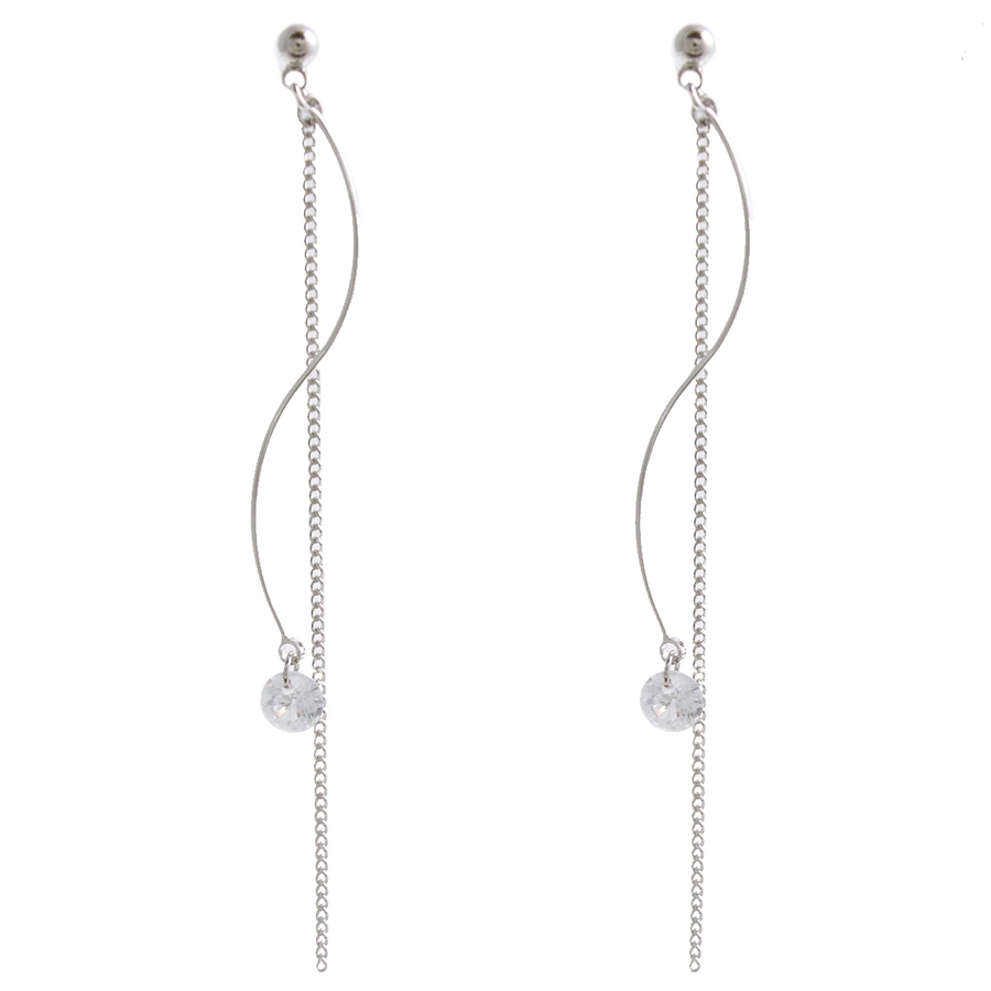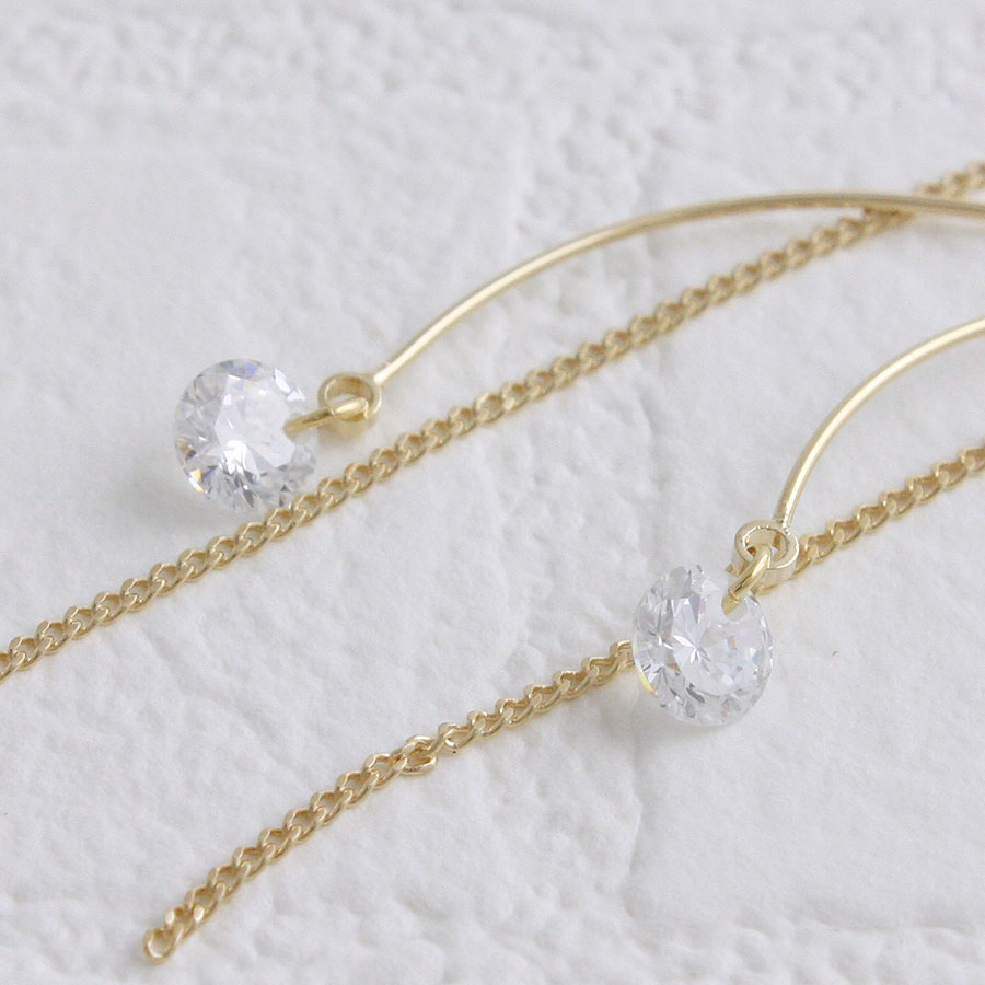 一粒ストーン付きウェーブロングノンホールピアス ピアスみたいなイヤリング キュー…