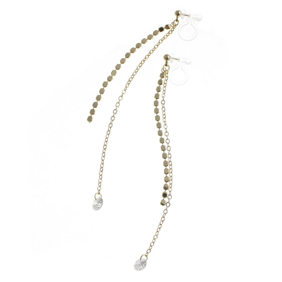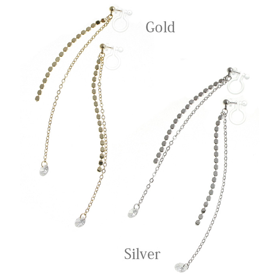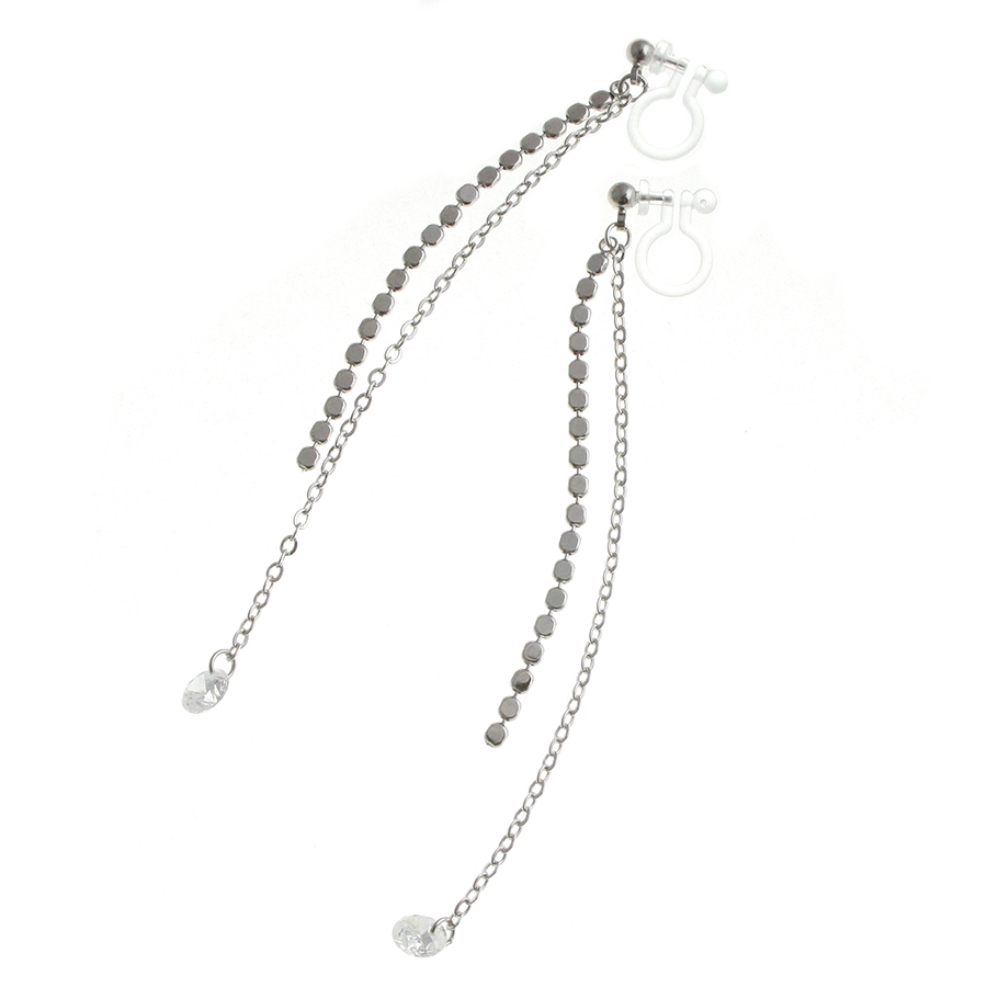 一粒ストーン付きメタルサークルチェーンノンホールピアス ピアスみたいなイヤリング…