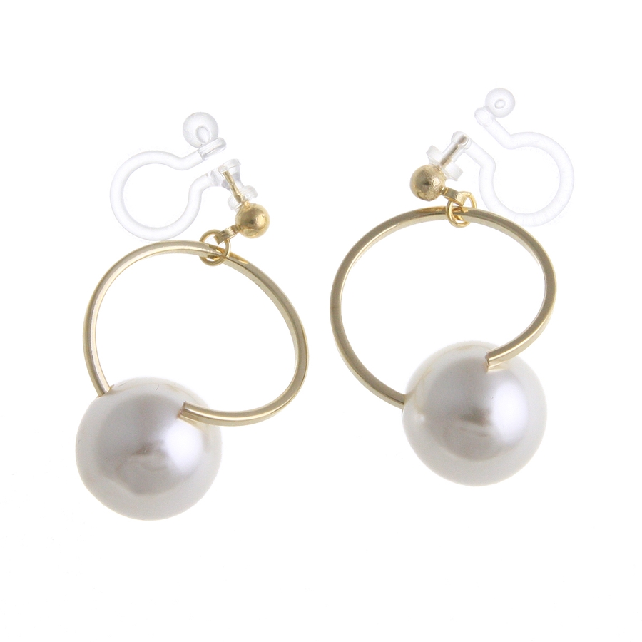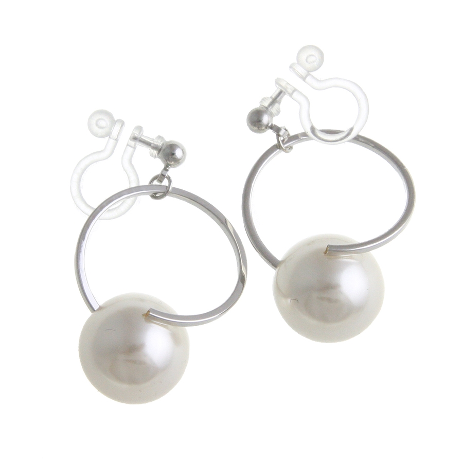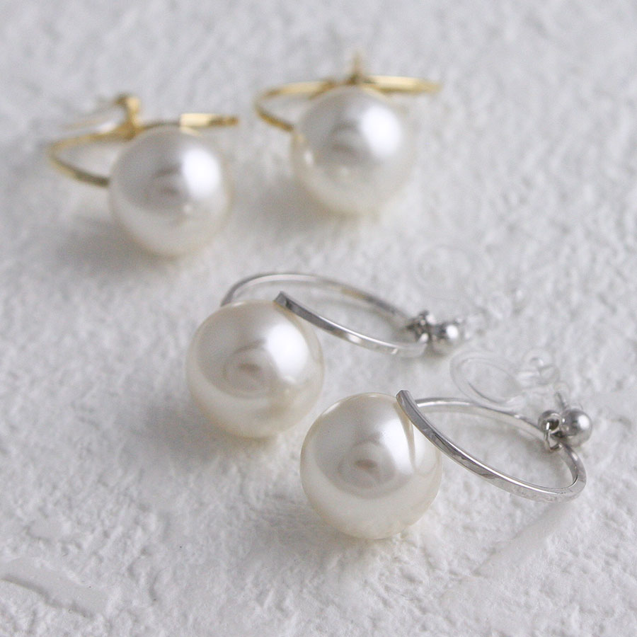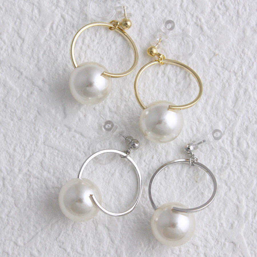 カーブラインパールノンホールピアス 樹脂製イヤリング ピアスみたいなイヤリング