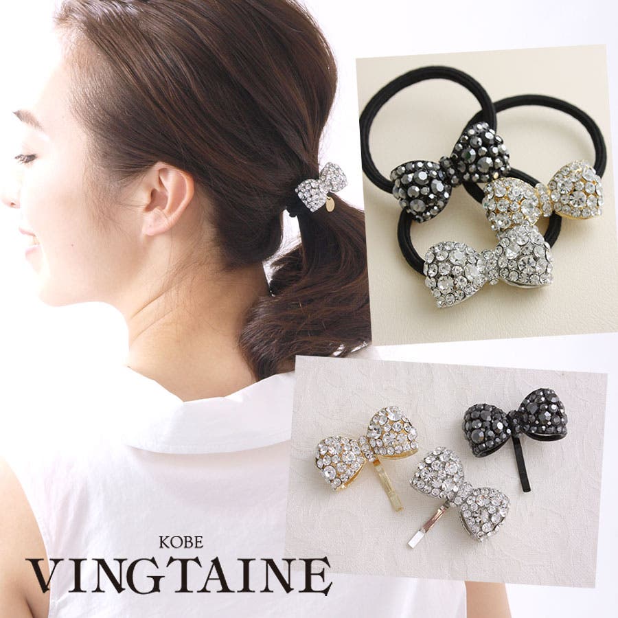 ビジューリボンヘアゴム ヘアカフ ヘアフック