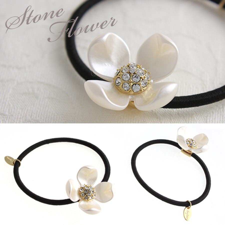 サイズ▼フラワー:直径約2.7cm、パヴェ部分:約0.9cm、ゴム:直径約5cm