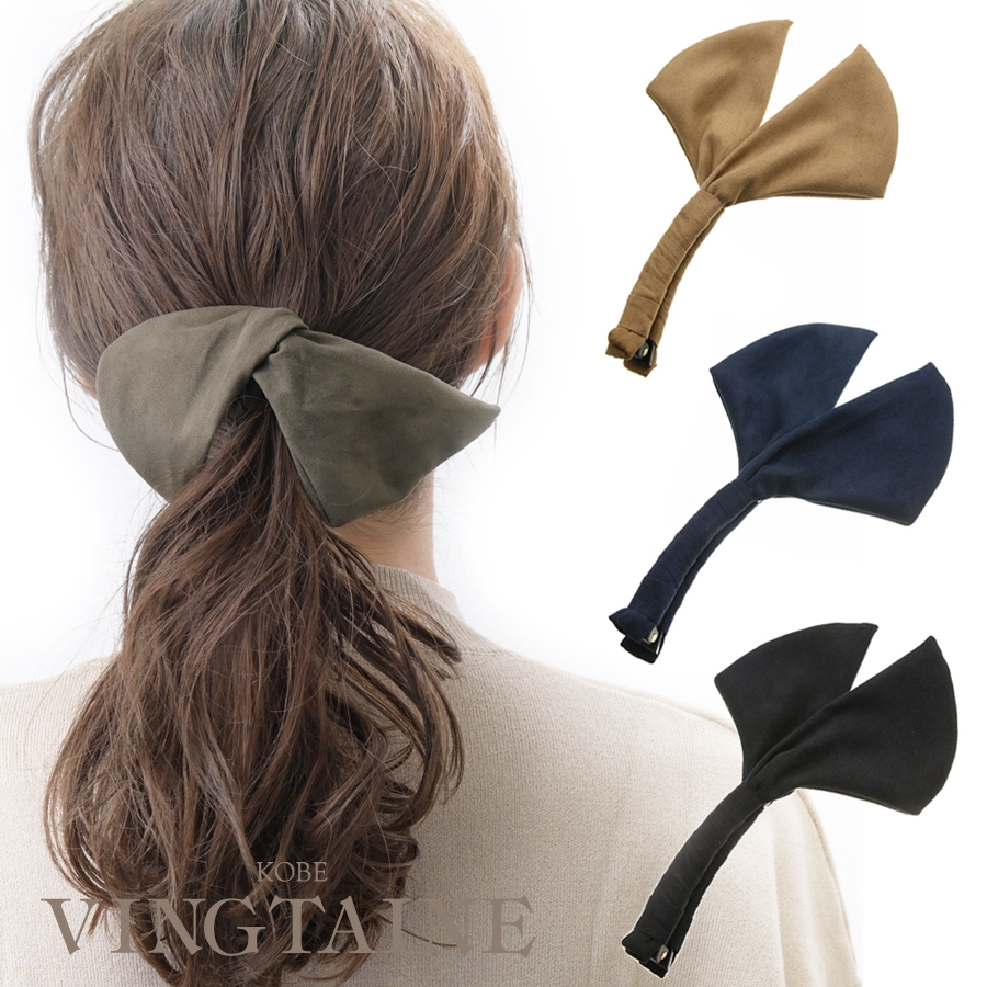 スエード調クロスリボンバナナクリップ ヘアアクセサリー オフィス