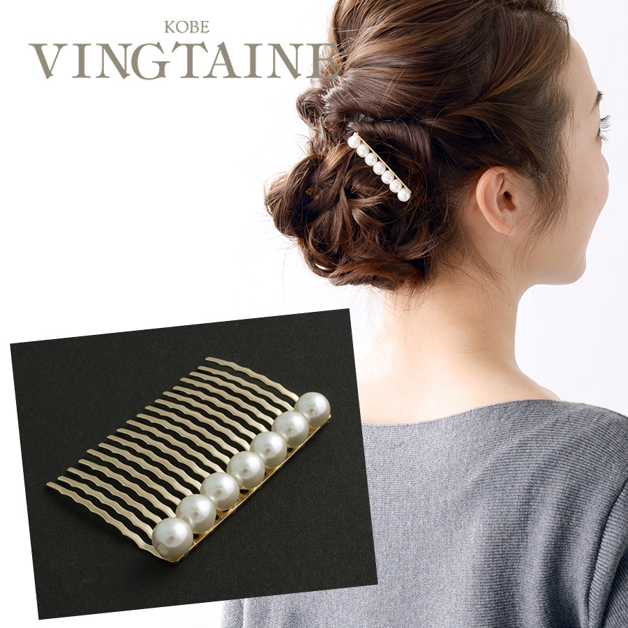 サイズ▼モチーフ部:全長約5.5cm×パール直径約8mm、櫛部分:幅約5.6cm、櫛の深さ:約3cm、約2mm間隔