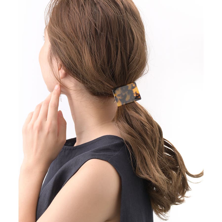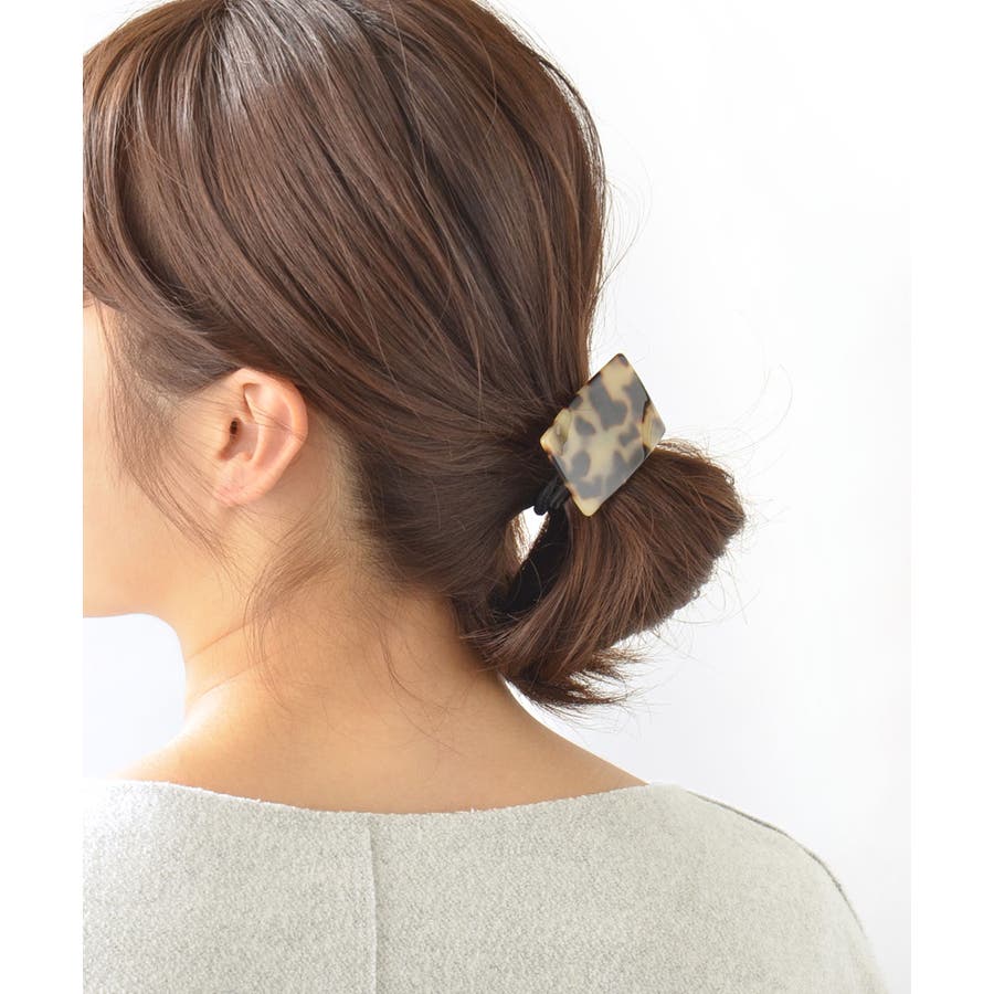 スクエア型のモチーフ×べっ甲風のヘアゴムは、きちんと見せたい場面で大活躍!洗練されたカラーと艶感で、シンプルながらも大人の女性を印象付けてくれます。柄物でも取り入れやすいべっ甲風アイテムはお洒落度UPの必需品!