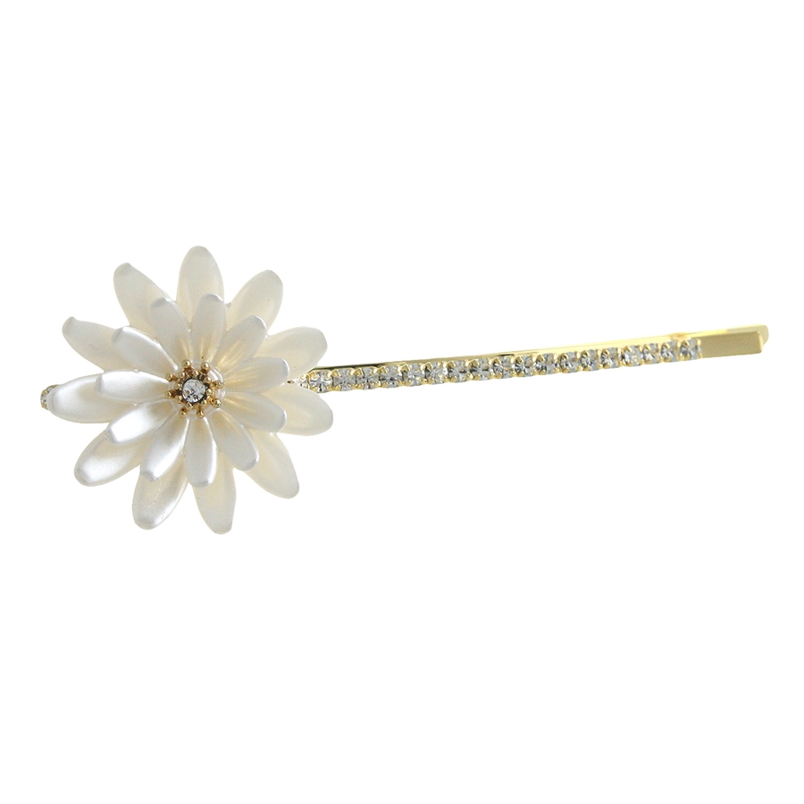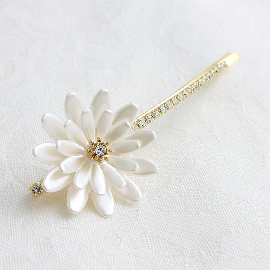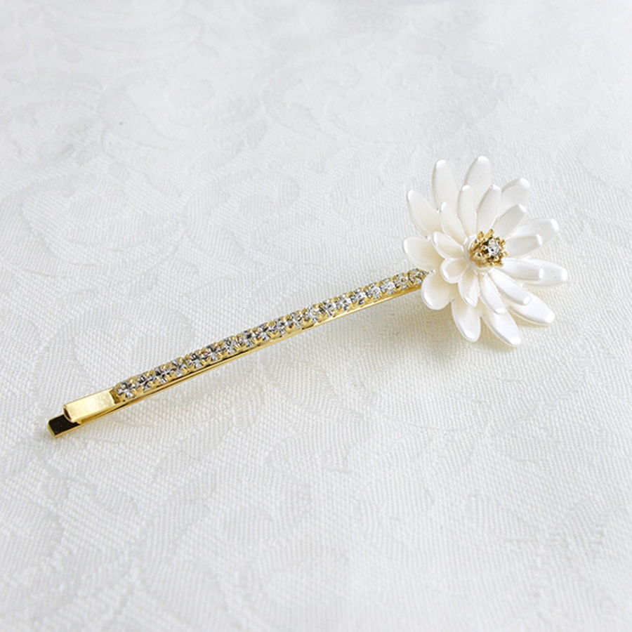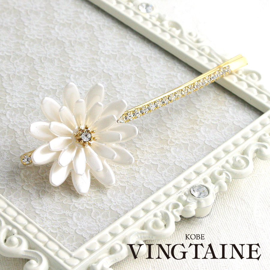 フェミニンフラワーロングヘアピン/ヘアアクセサリー/ラインストーン h-776