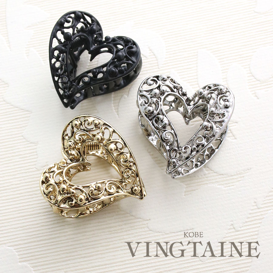 ハートミニバンスクリップ ヘアクリップ アンティーク調