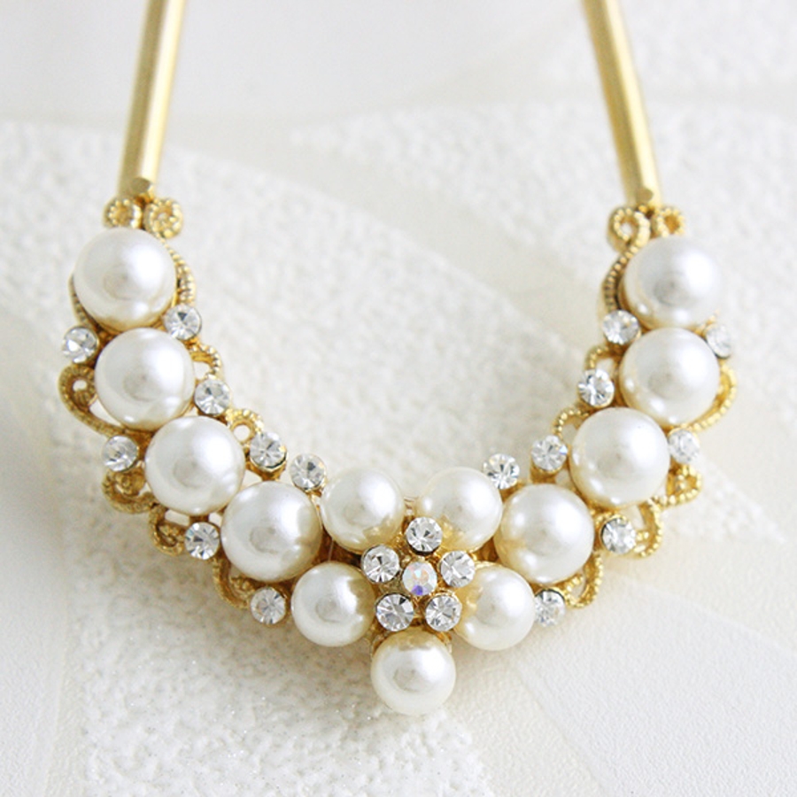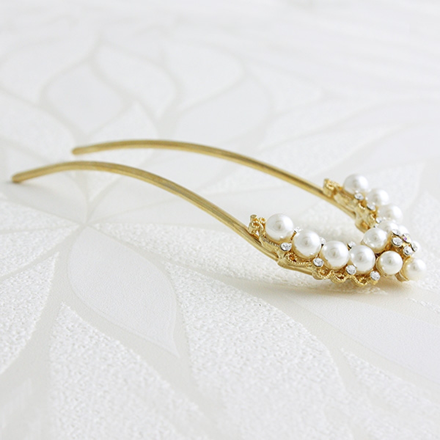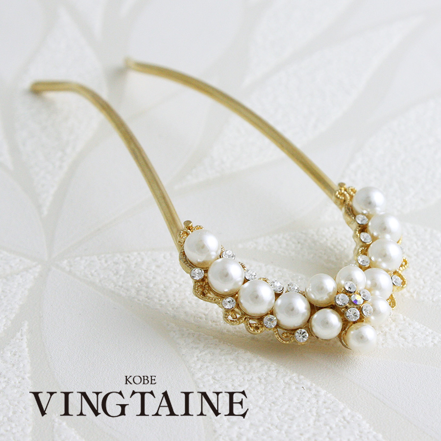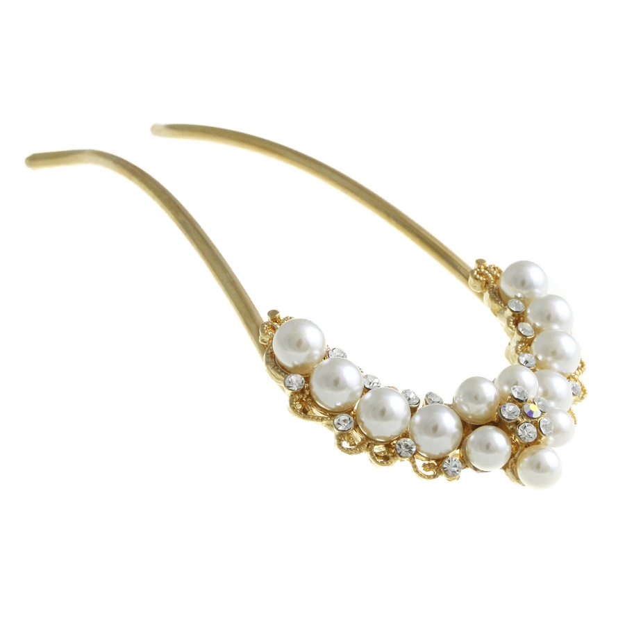 パールフラワーコーム/かんざし/U字 ヘアアクセサリー H-897