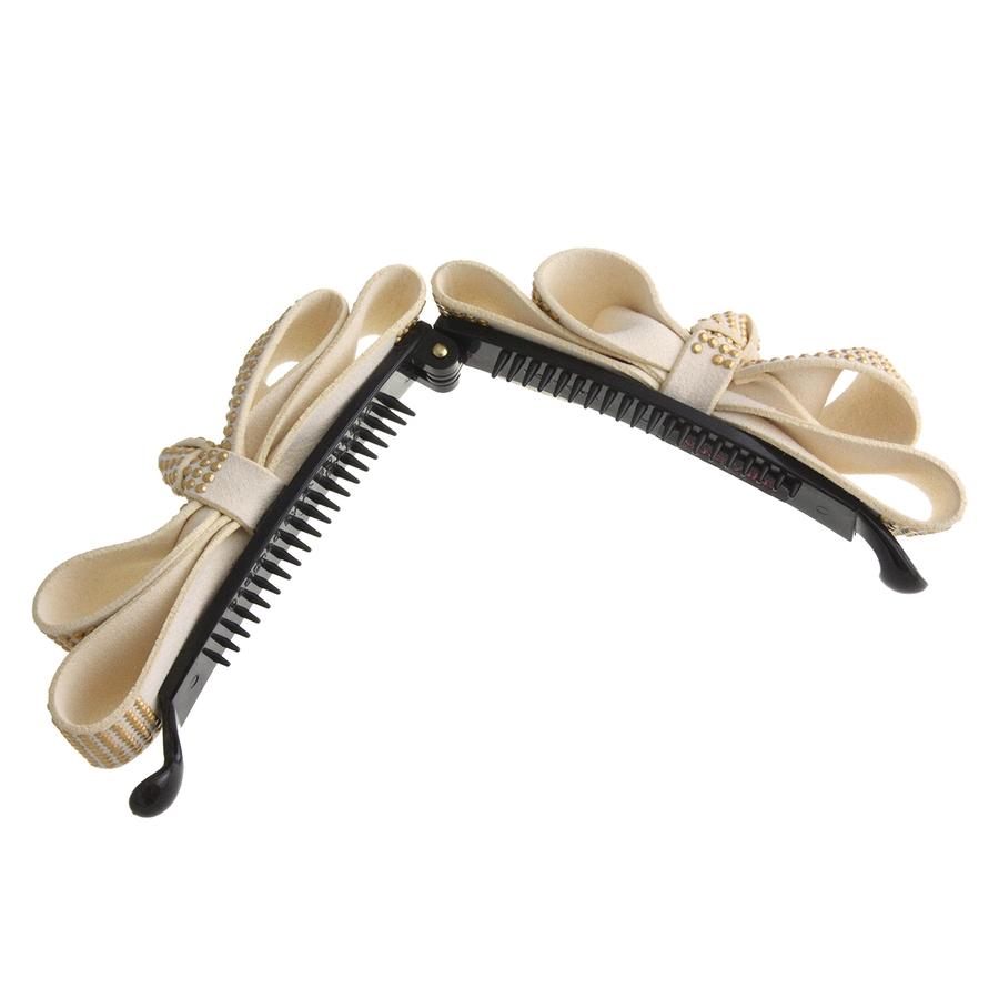 スタッズ風カラーリボンバナナクリップ シンプル デイリー
