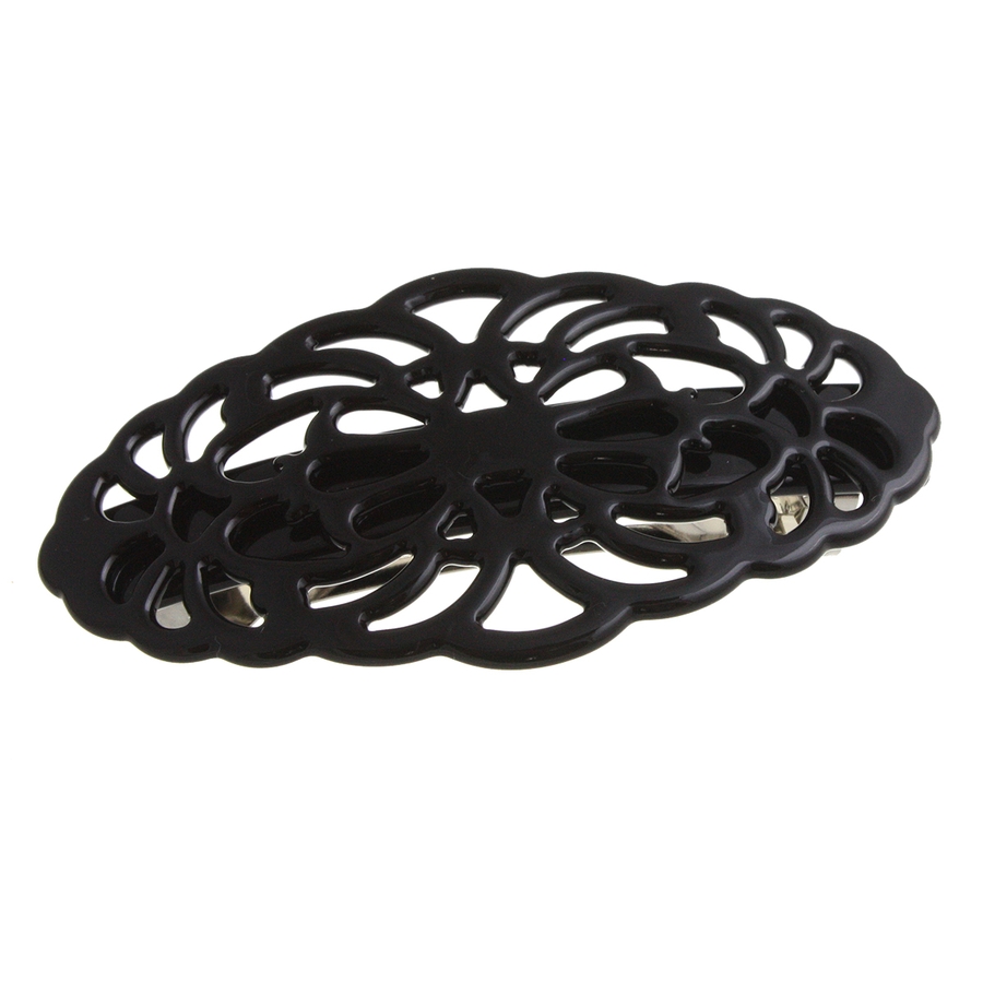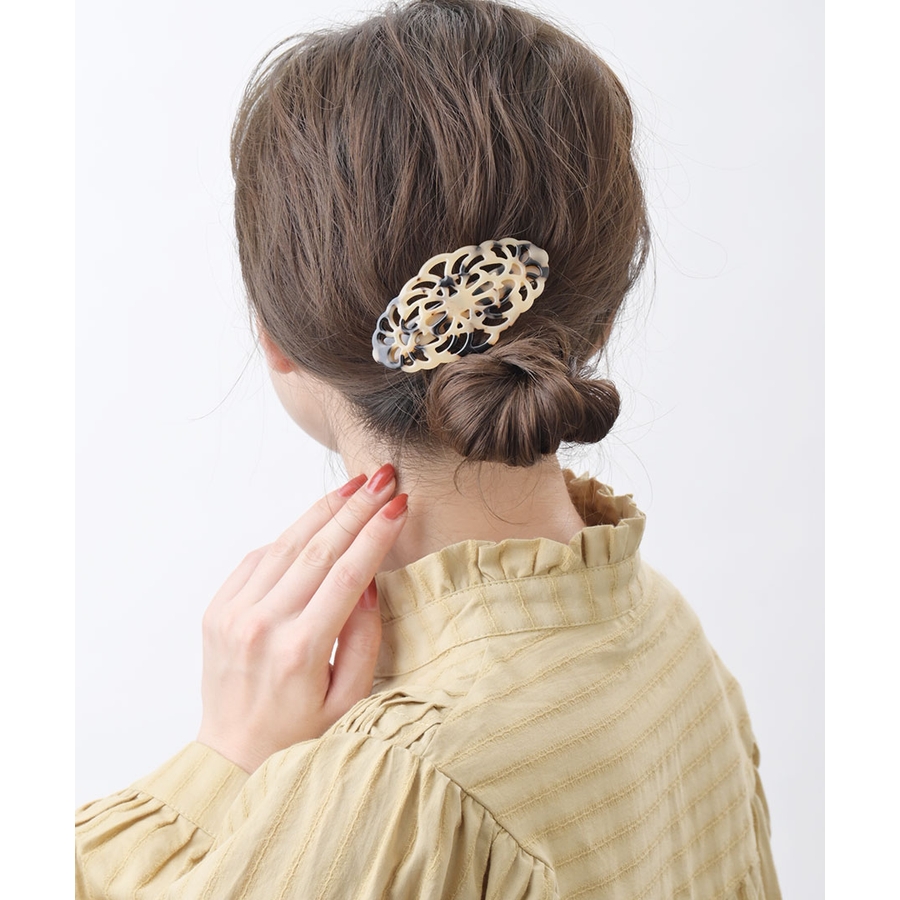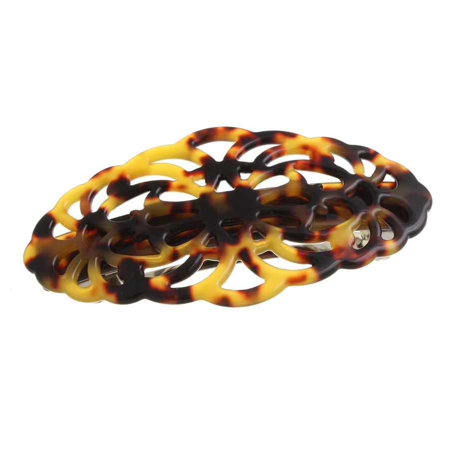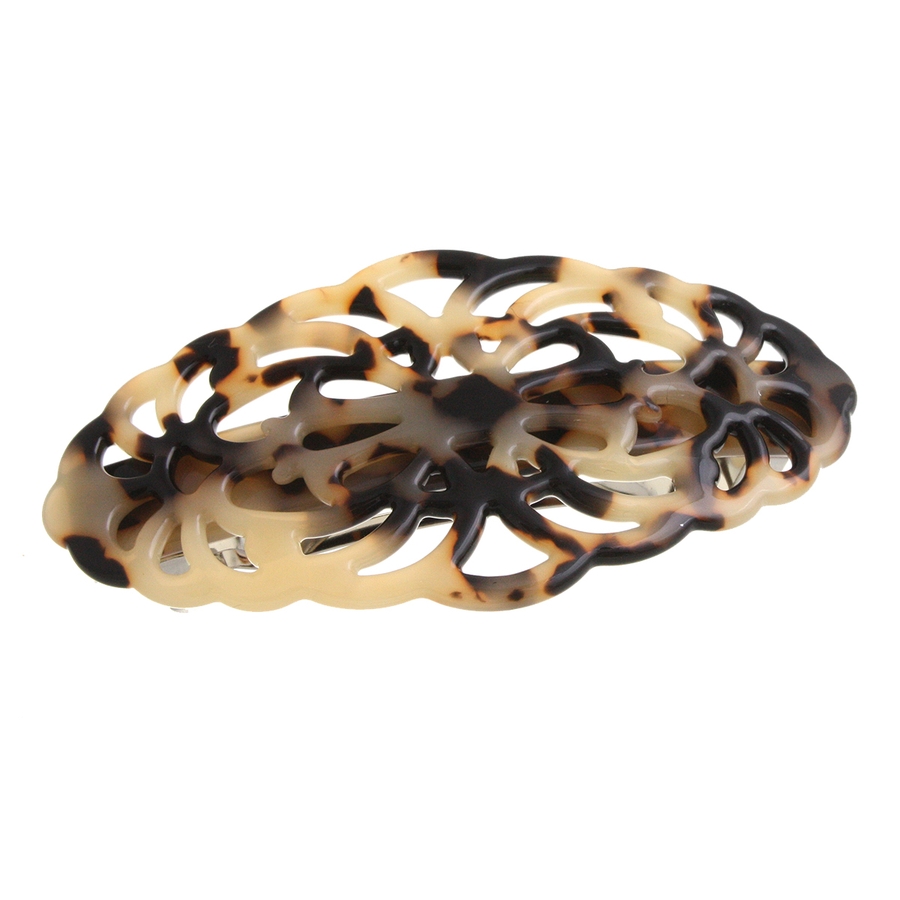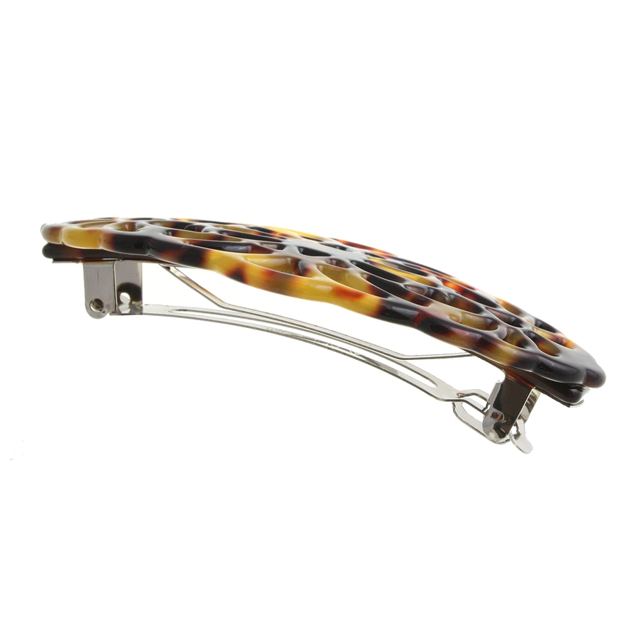 べっ甲風透かし模様バレッタ オーバル マーブル
