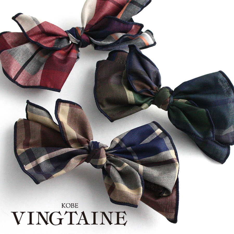 ビッグチェック柄リボンバレッタ フェミニン キュート