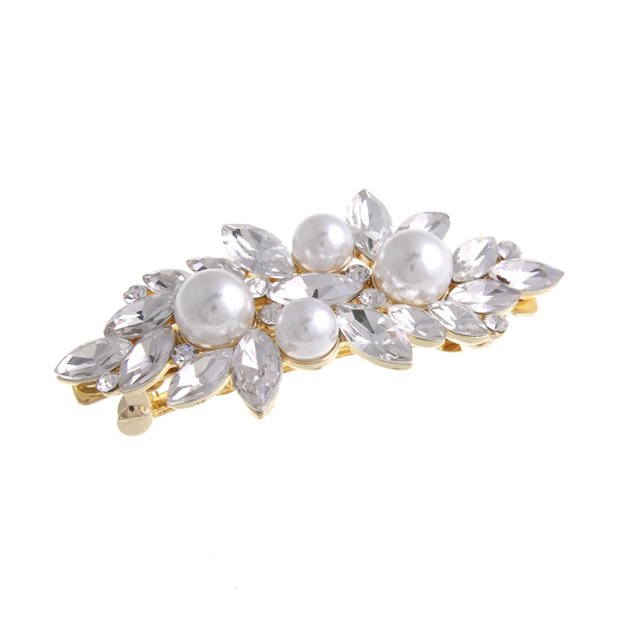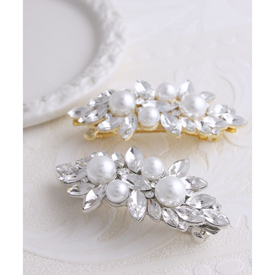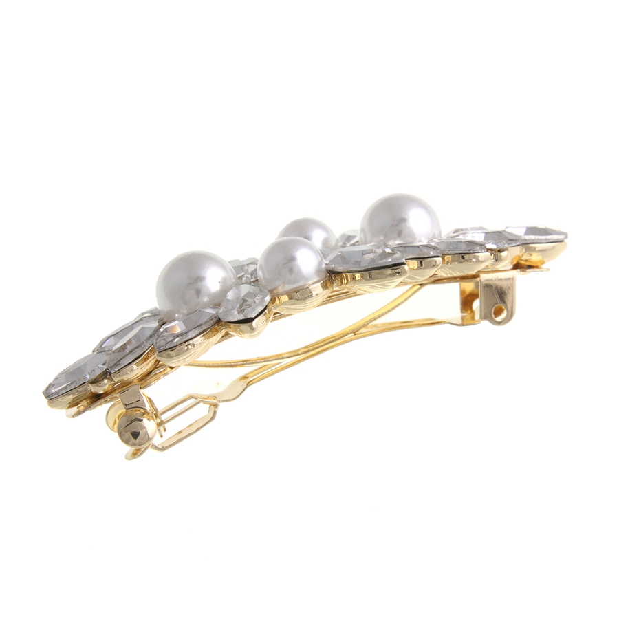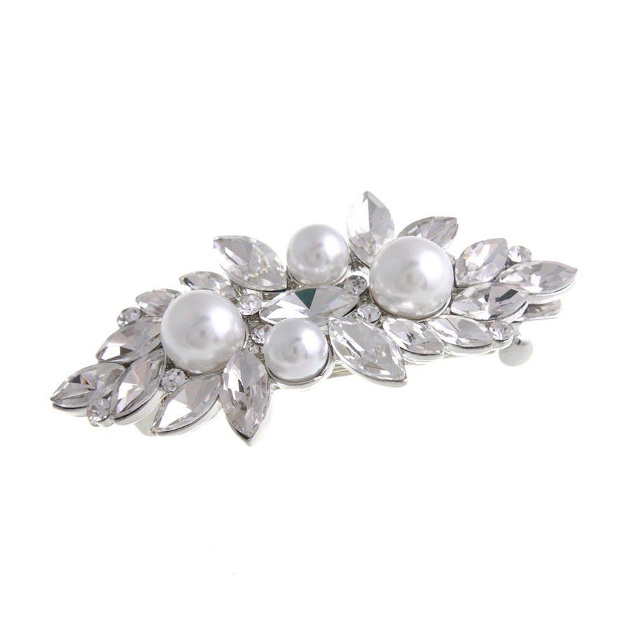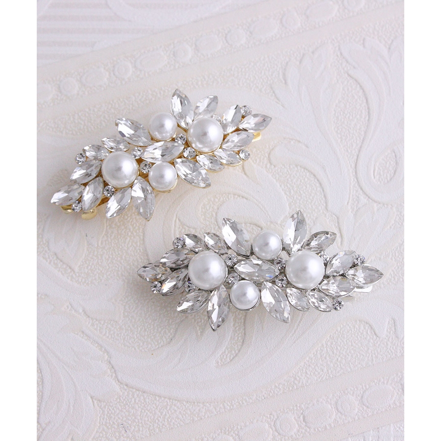 パールビジューリーフモチーフバレッタ(S) エレガント 小さめ