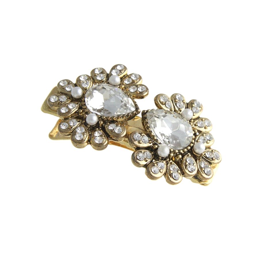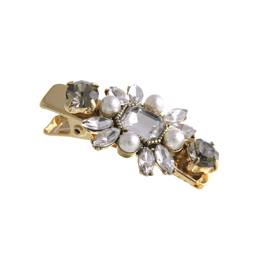 アンティーク調パールビジューミニヘアクリップ 小ぶり くちばしクリップ