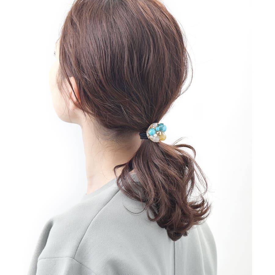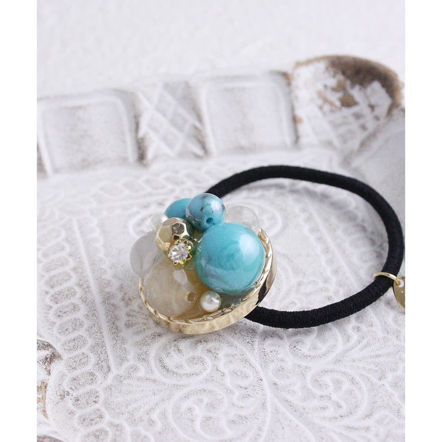 ターコイズカラーミックスポニーフック ヘアゴム ヘアカフ