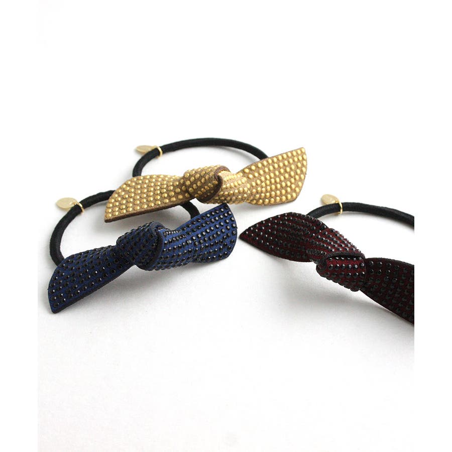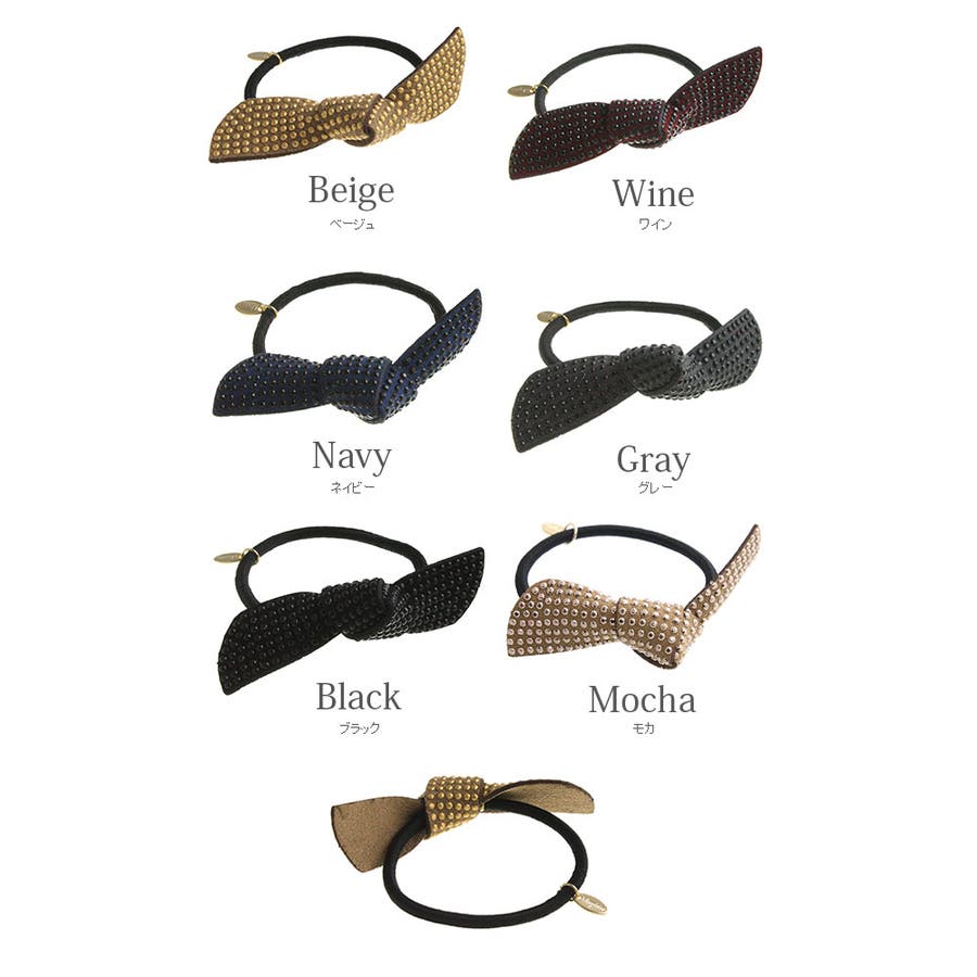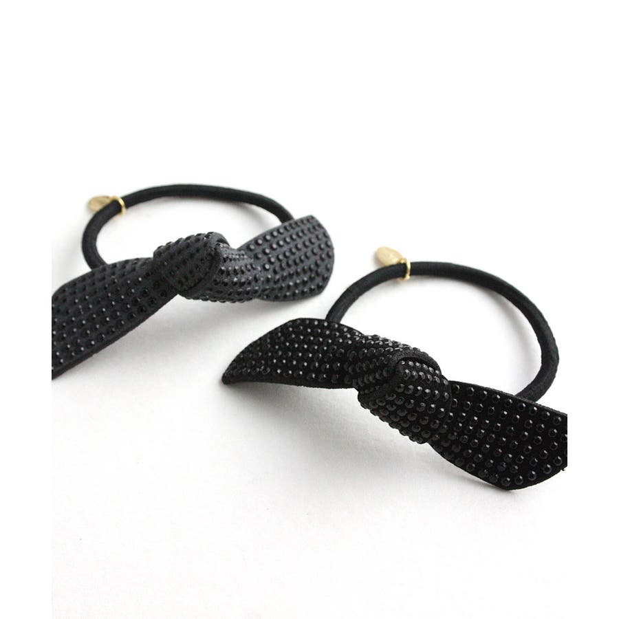 スタッズ風リボンヘアゴム ベーシック ブラック