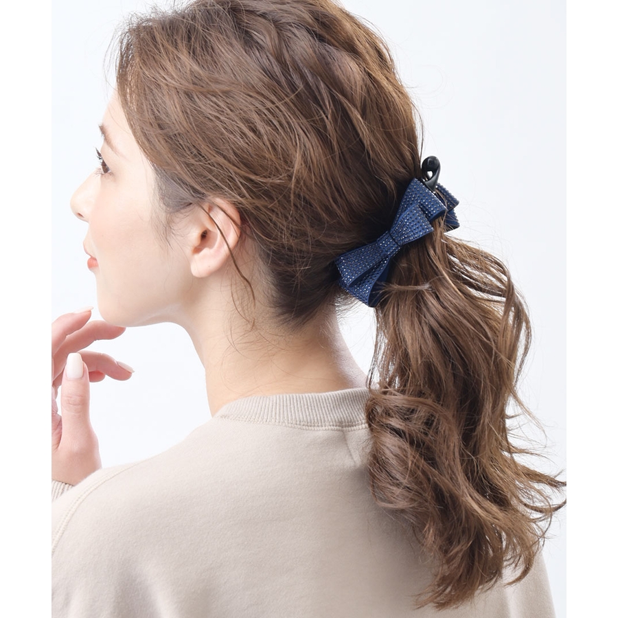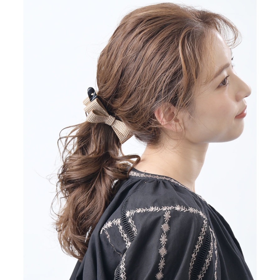 スタッズ風リボンバナナクリップ ベーシック ブラック