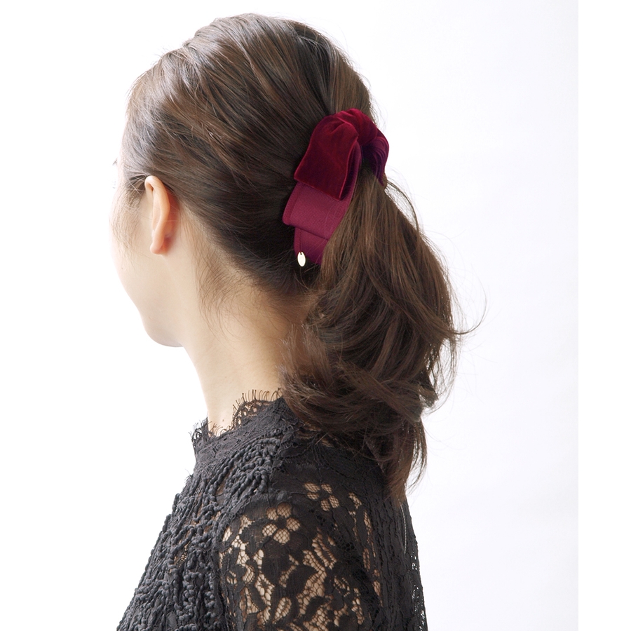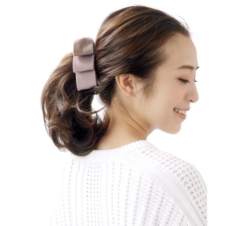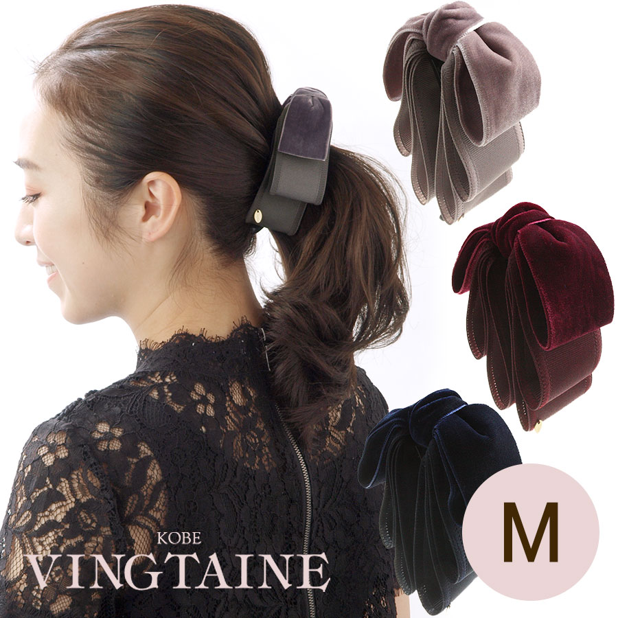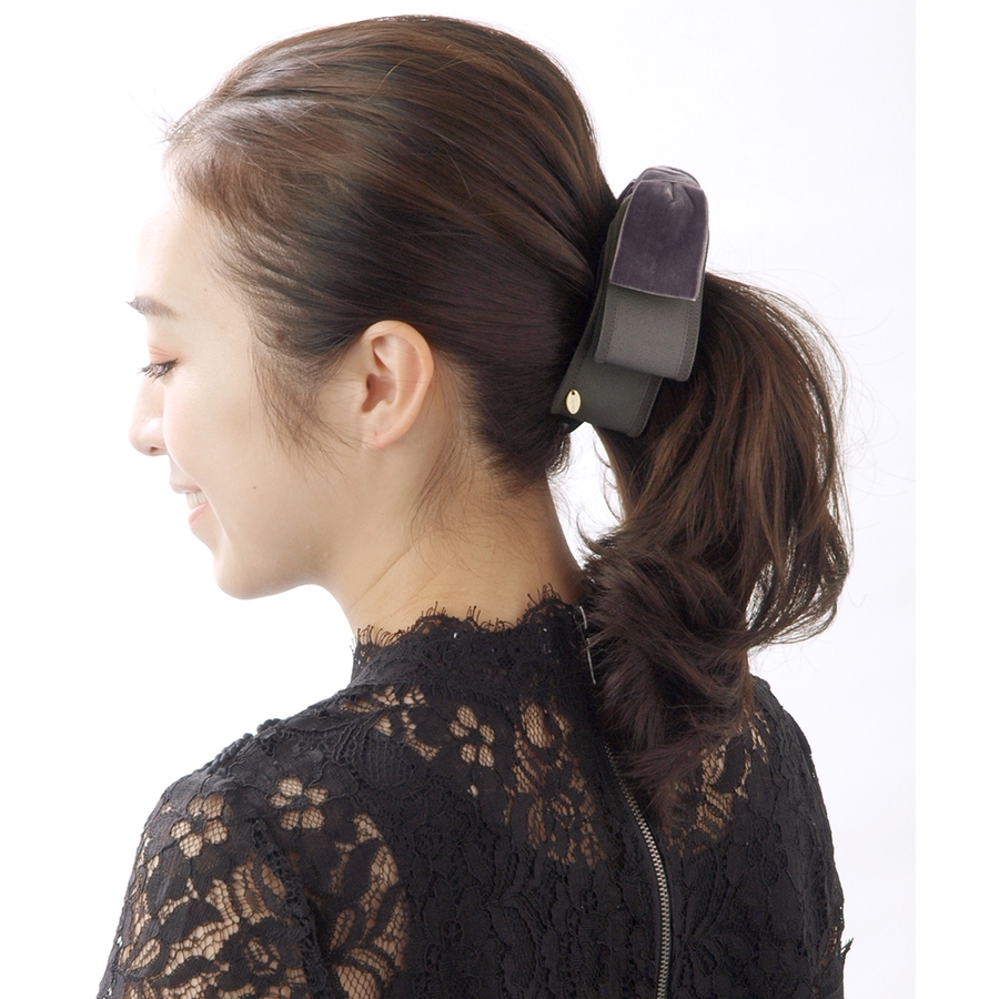 トップリボンバナナクリップ(ベルベット)(M) ブラック グレー