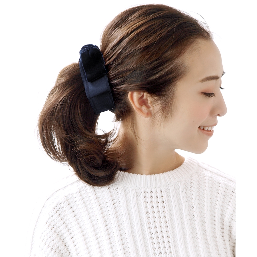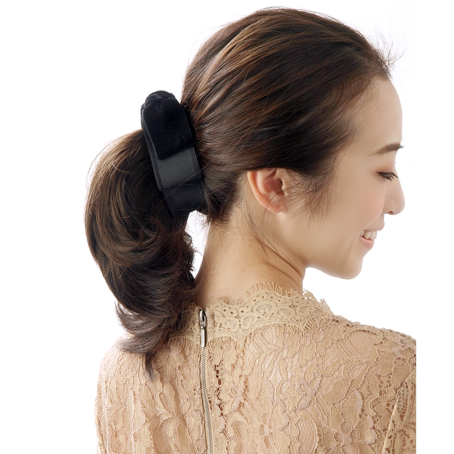 ご注意▼※束ねた髪の毛を平らに、クリップ全体に散らすようにはさむと、すっきりとまとめられます。破損の原因になりますので、くれぐれも髪の毛に厚みのある状態(ゴムで結んだり、ねじった状態)では、はさまないようにご注意下さい。