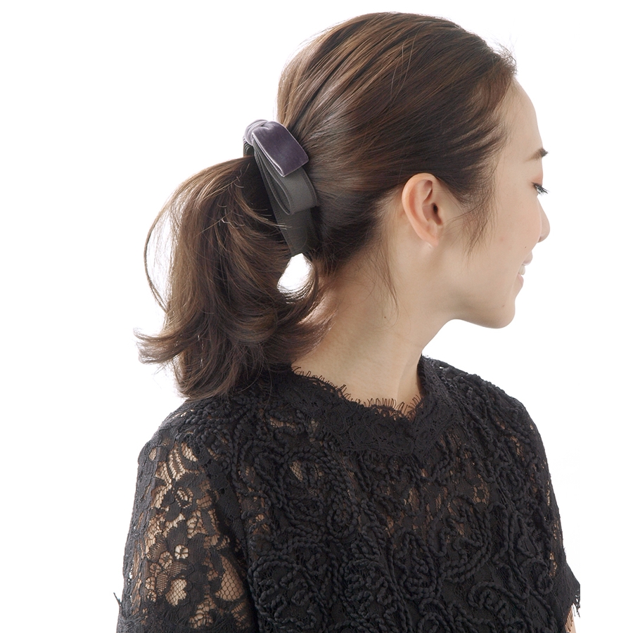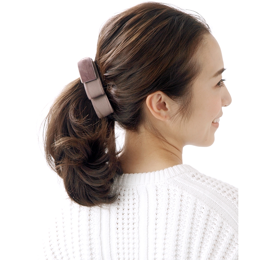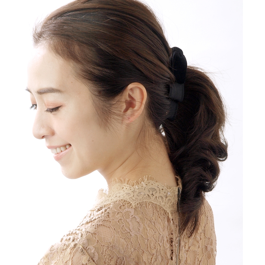 ご注意▼※束ねた髪の毛を平らに、クリップ全体に散らすようにはさむと、すっきりとまとめられます。破損の原因になりますので、くれぐれも髪の毛に厚みのある状態(ゴムで結んだり、ねじった状態)では、はさまないようにご注意下さい。