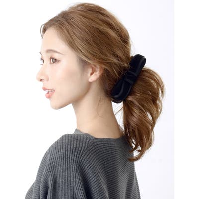 ベルベット×グログランツイストリボンバナナクリップ 秋冬 上品