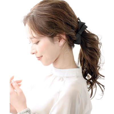 フェイクレザーダブルリボンバナナクリップ ヘアアクセサリー ベーシック